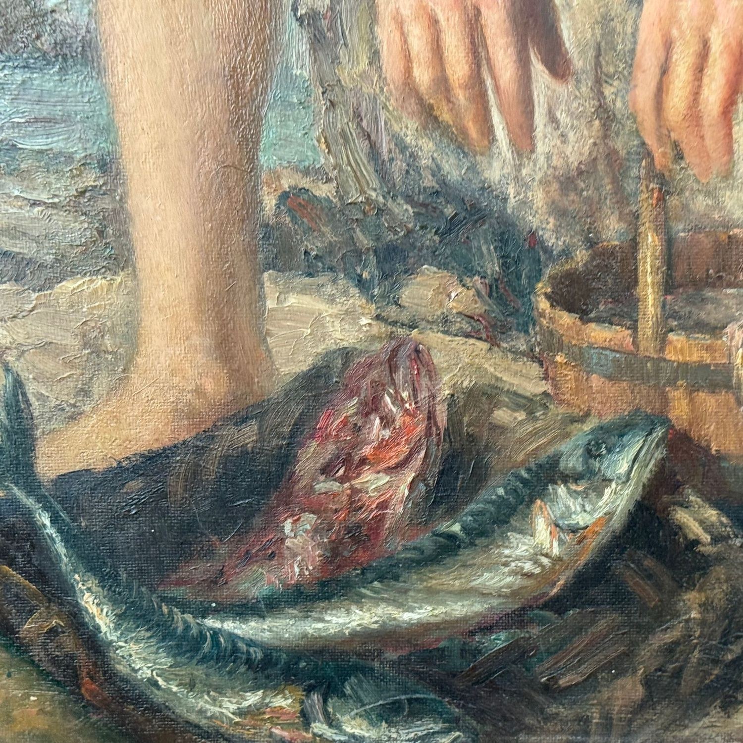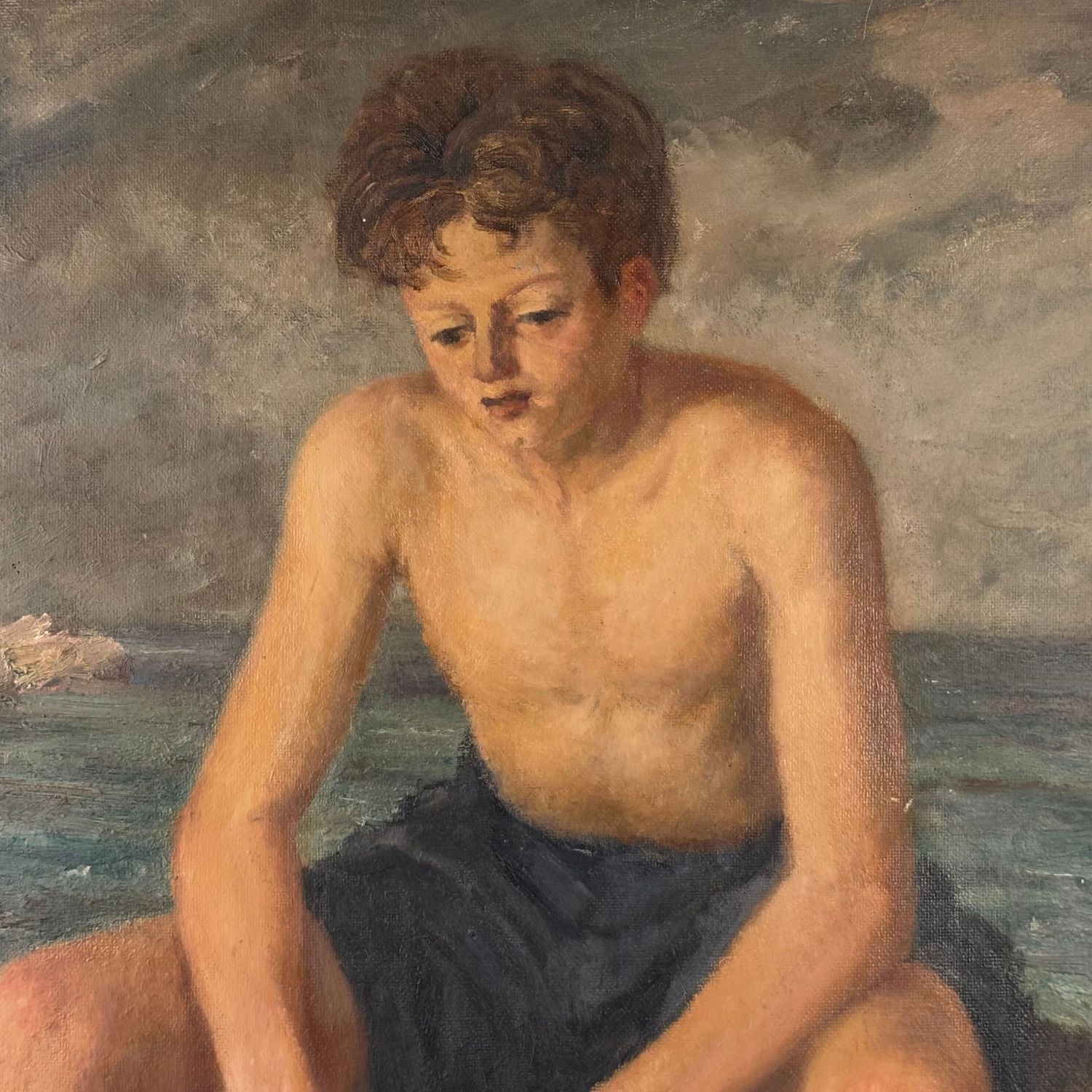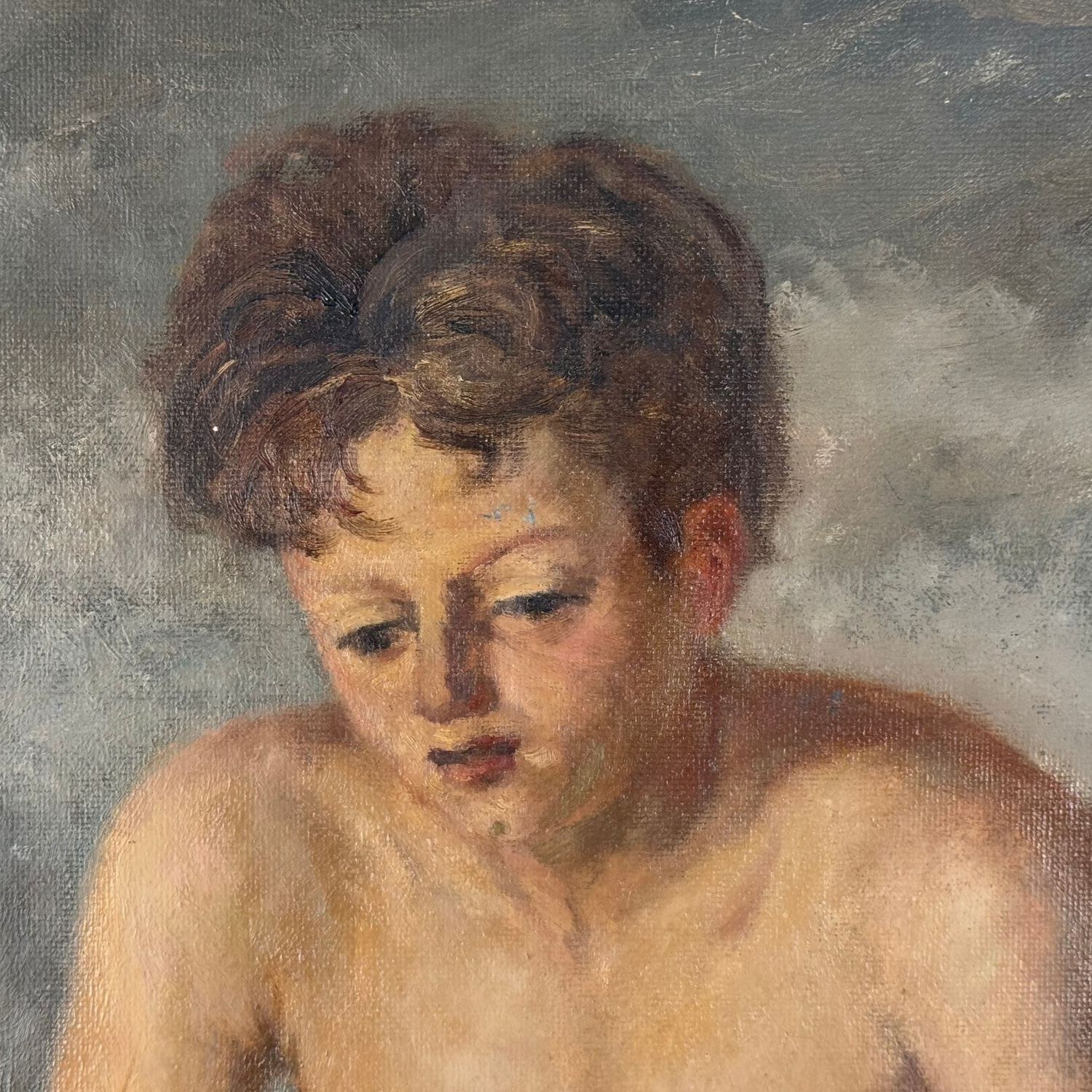 Oil painting on canvas applied to panel, 20th century, Italian school, depicting Young Fisherman.