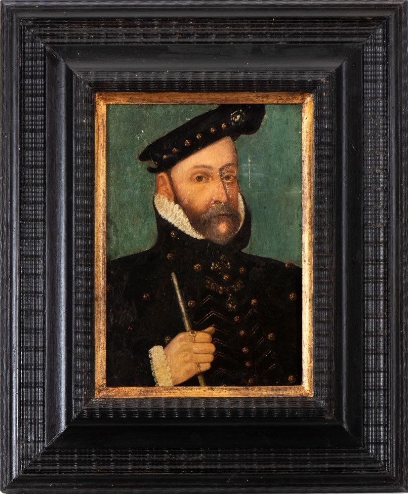 Artista francese, XVI secolo, Portrait of a nobleman with a scepter, cap, and rings