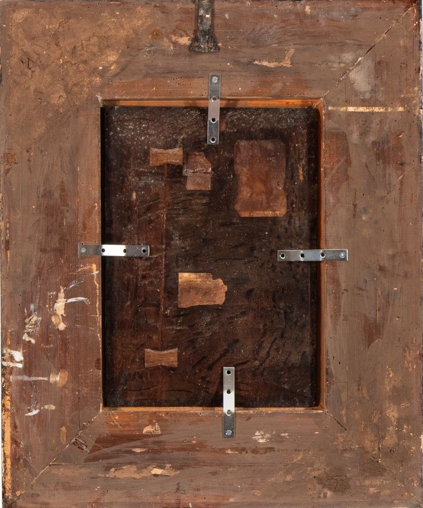 The painting bears on the back of the panel an old gallery label on the reverse: "HENRY GRAVES & CO. / 919(?) / 6 PALL MALL LONDON".