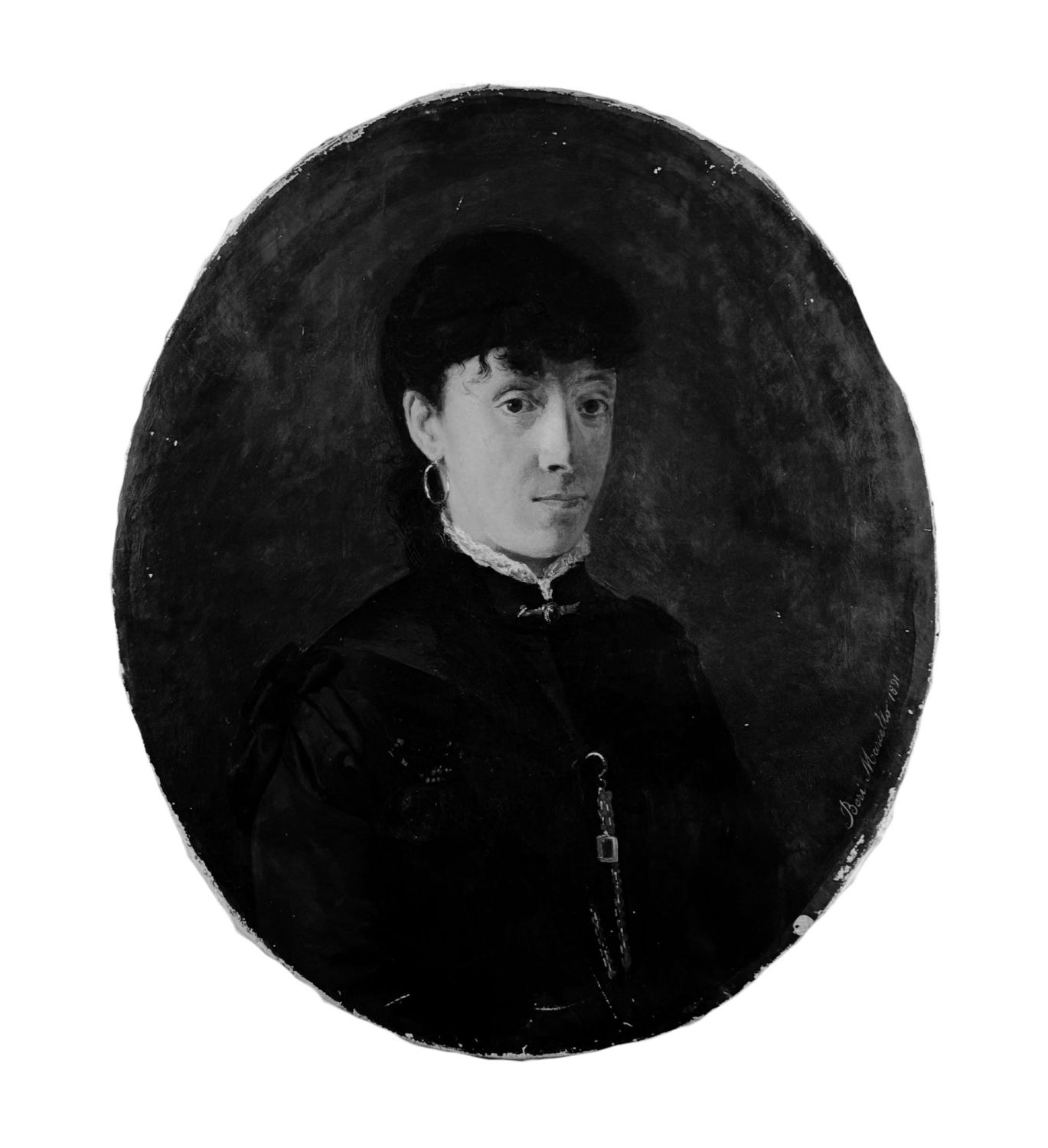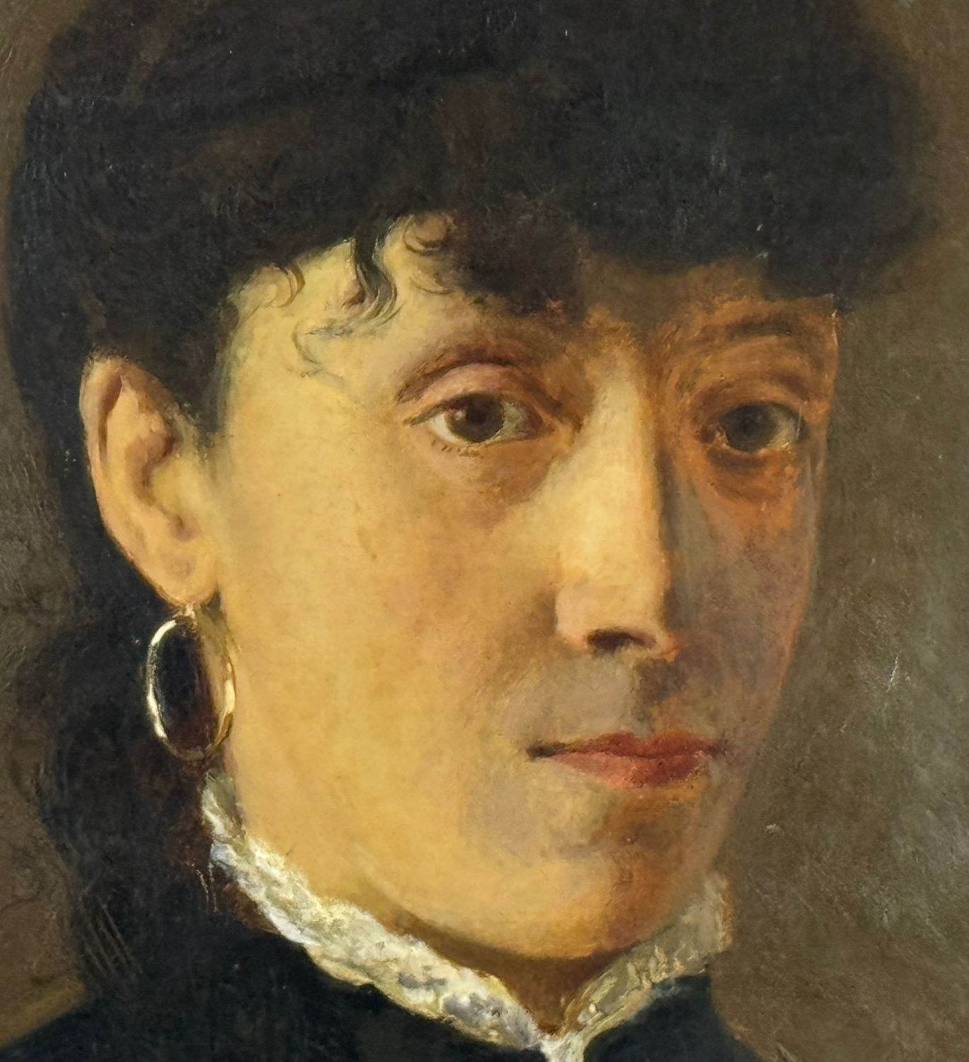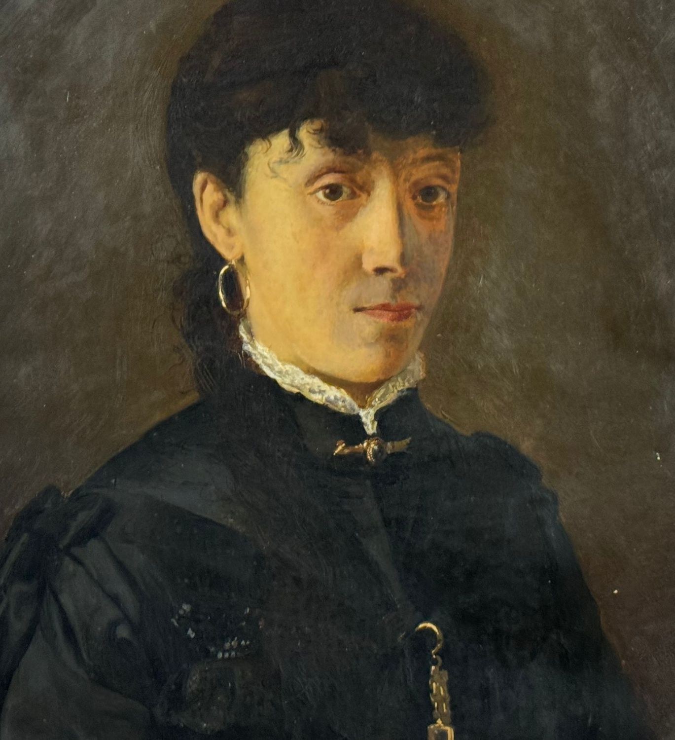 Oil painting on oval canvas, 19th-century Italian school, depicting a Portrait of a Woman (The Mother of Decio Scuri). Dimensions: 72x62 cm. Signed on the right side by Beri Marcello. The artwork is in good condition, with slight signs of wear as shown in the attached photos.