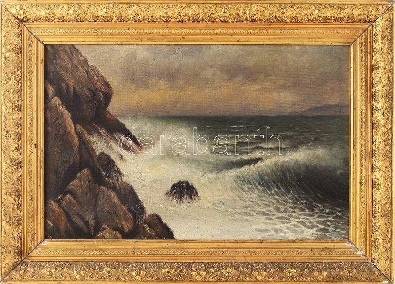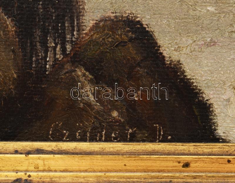 Czölder Dezső (1875-1933), felvidéki festő: Vízparti táj. Olaj, vászon, jelzett. Dekoratív, kissé sérült fakeretben, 30×46 cm