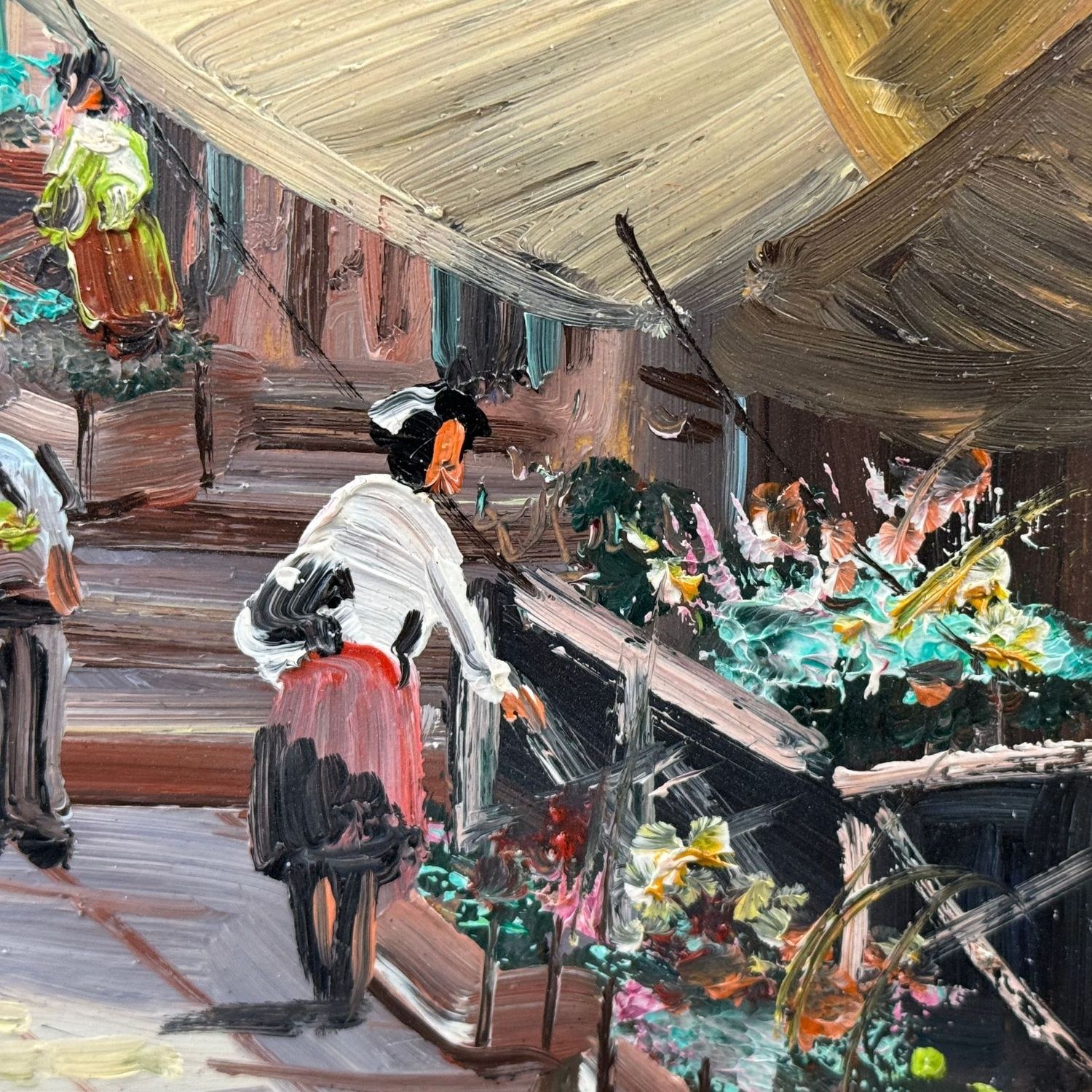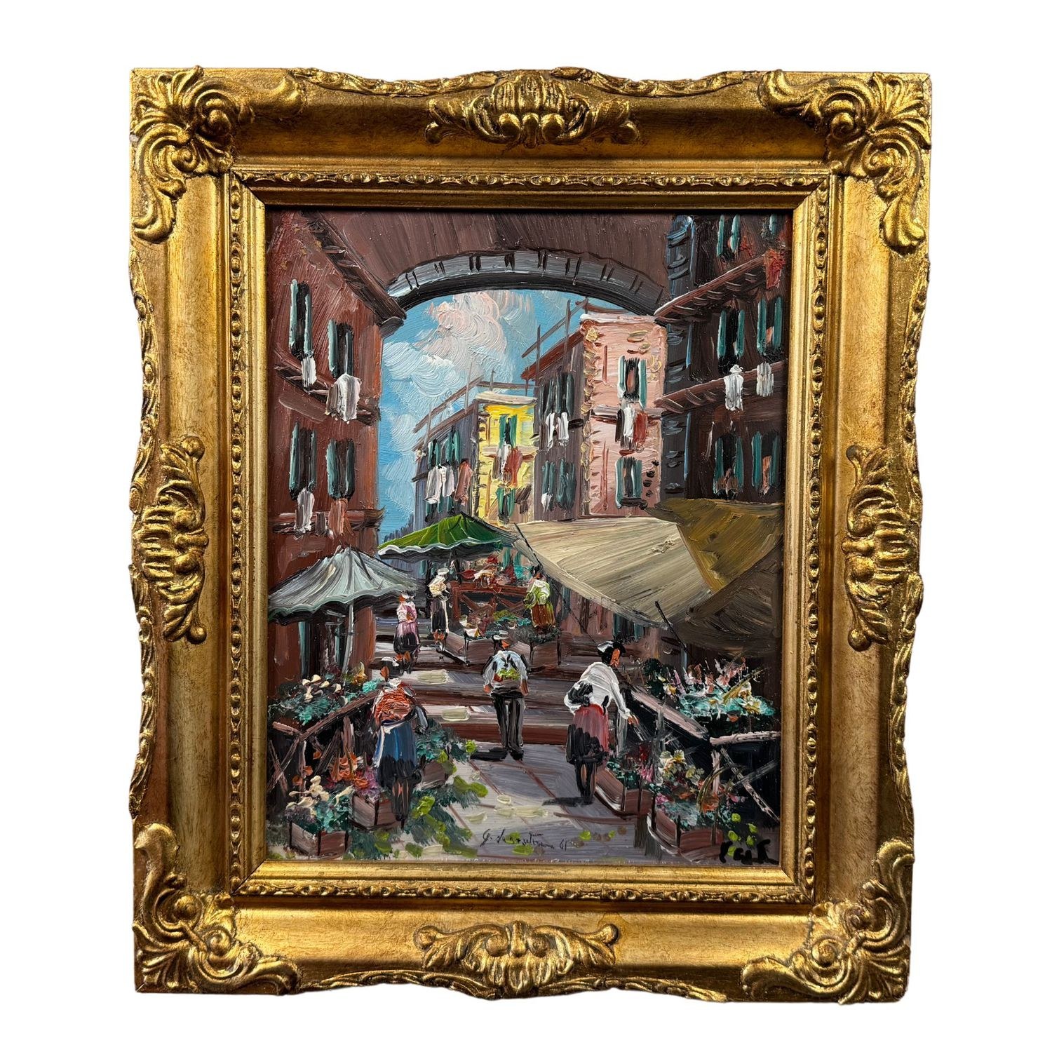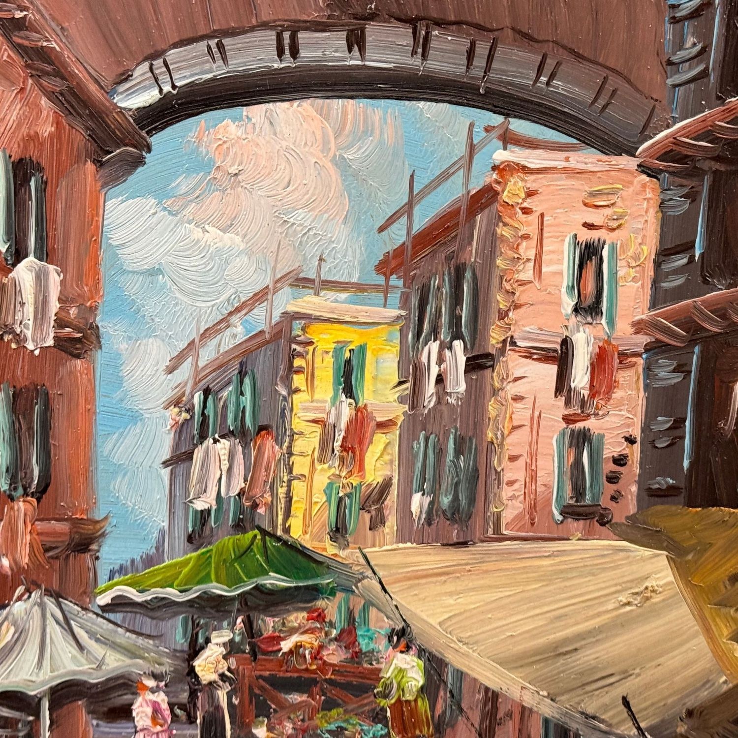 Oil painting on panel, 20th century, Italian school, depicting a Neapolitan street.