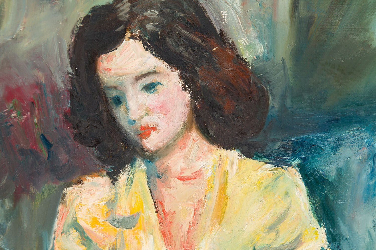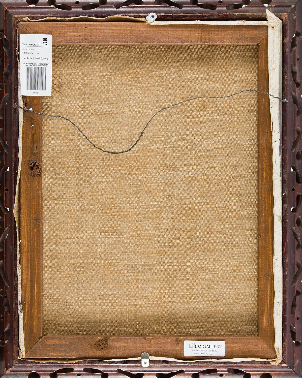na odwrociu stempel Lilac Gallery, na krośnie malarskim papierowa nalepka wystawowa