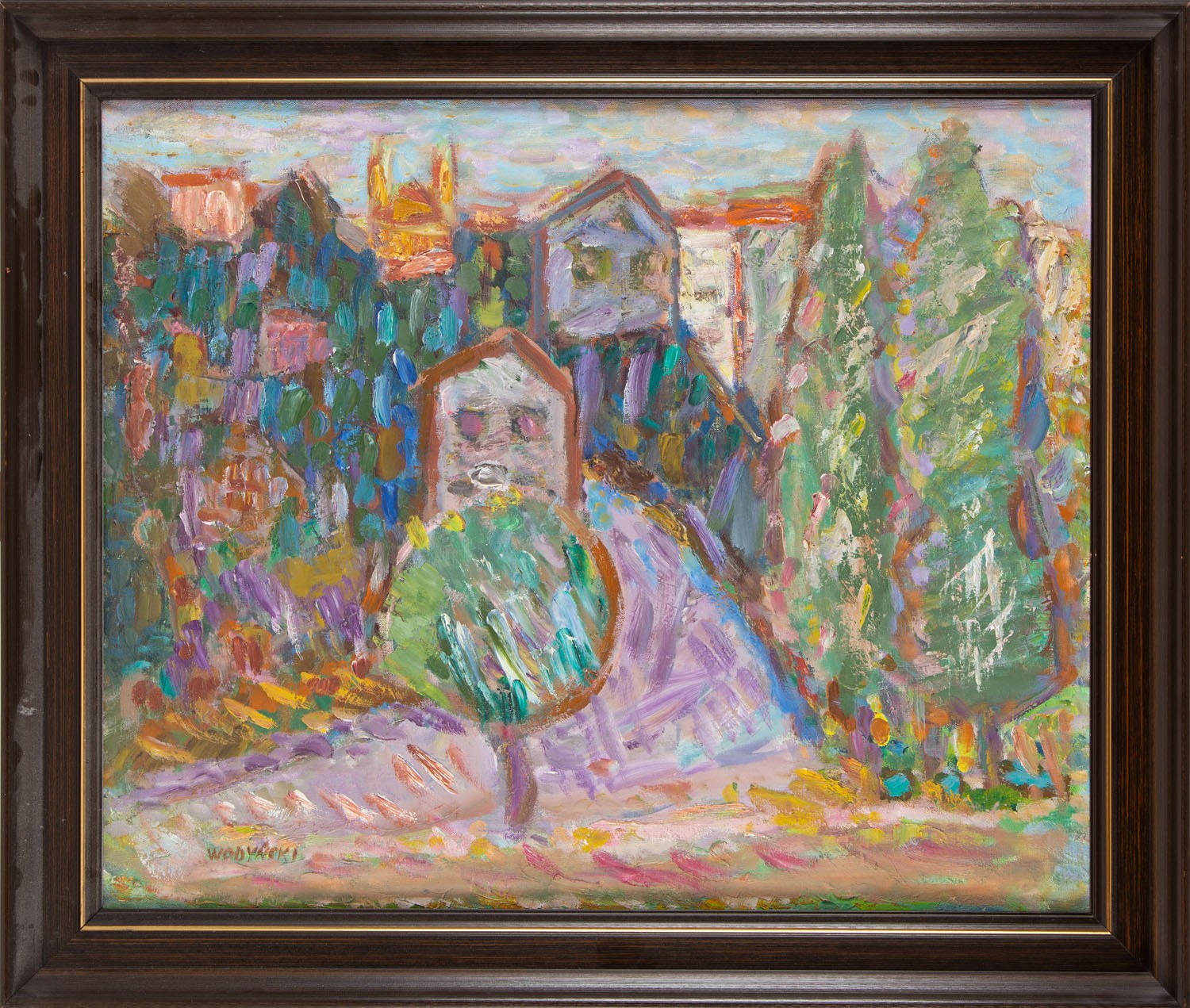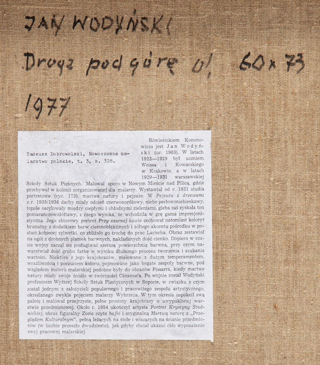 sygnowany, datowany i opisany na odwrociu: 'JAN WODYŃSKI | Droga pod górę ol. 60 x 73 | 1977' oraz nalepka z biogramem artysty