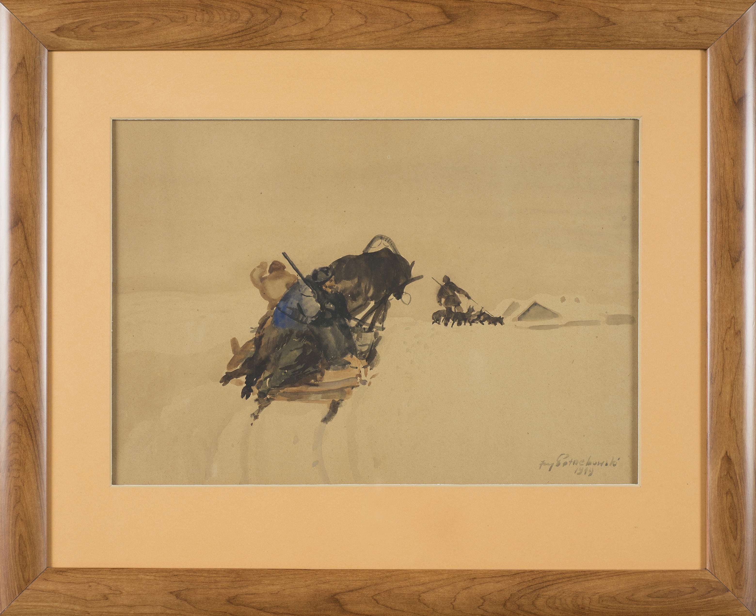 Akwarela, papier, 28,5 x 41 cm, sygn. p.d.: Jerzy Potrzebowski 1949.