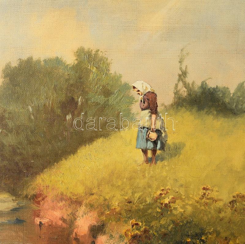 Neogrády Antal (1861-1942): Libapásztorlány. Olaj, vászon, jelezve balra lent: Neogrády A. 60x50 cm. Hátoldalán BÁV címkével és árcédulával 1991-ből. Dekoratív, sérült fakeretben.