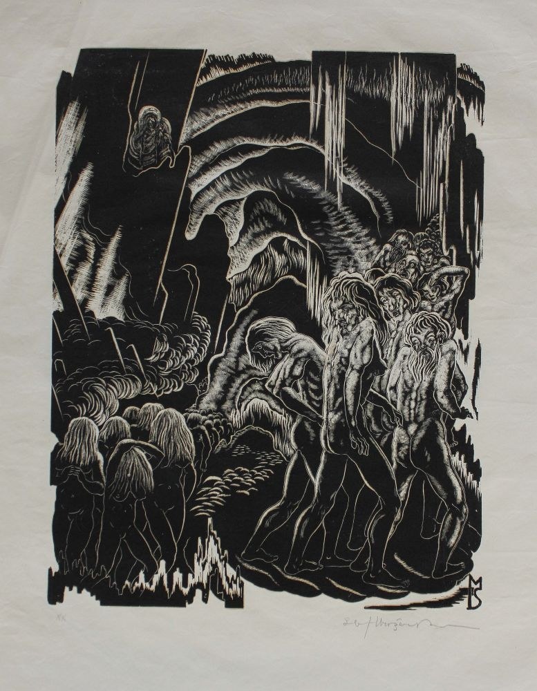 Ilustracja do „Boskiej komedii” Dantego. Piekło, Pieśń XX sygn.p.d. StefMrożewski i na klocku p.d.monogramem MS