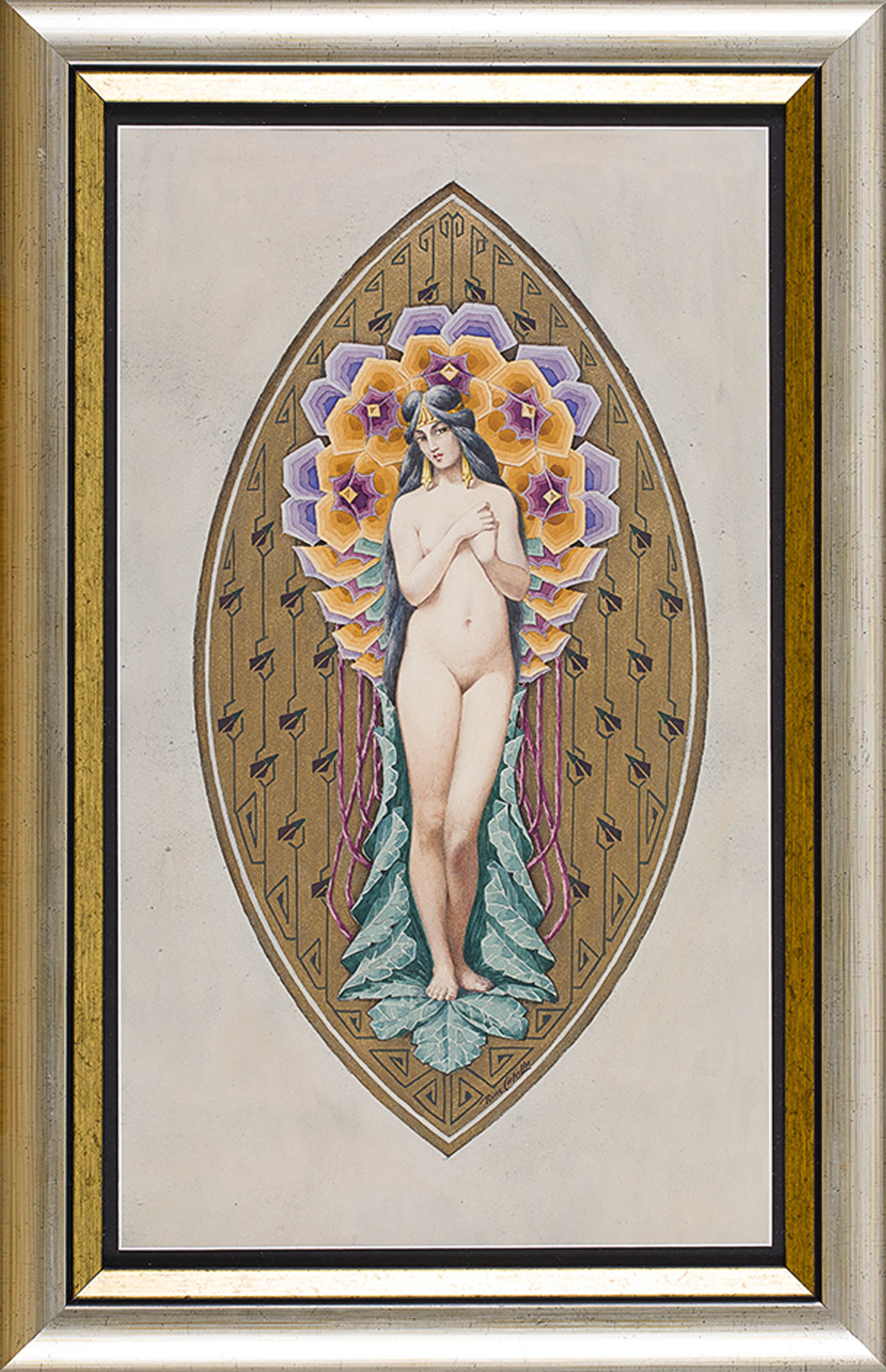 akwarela, gwasz, złota farba, papier, 53 × 30,5 cm w świetle passe-partout