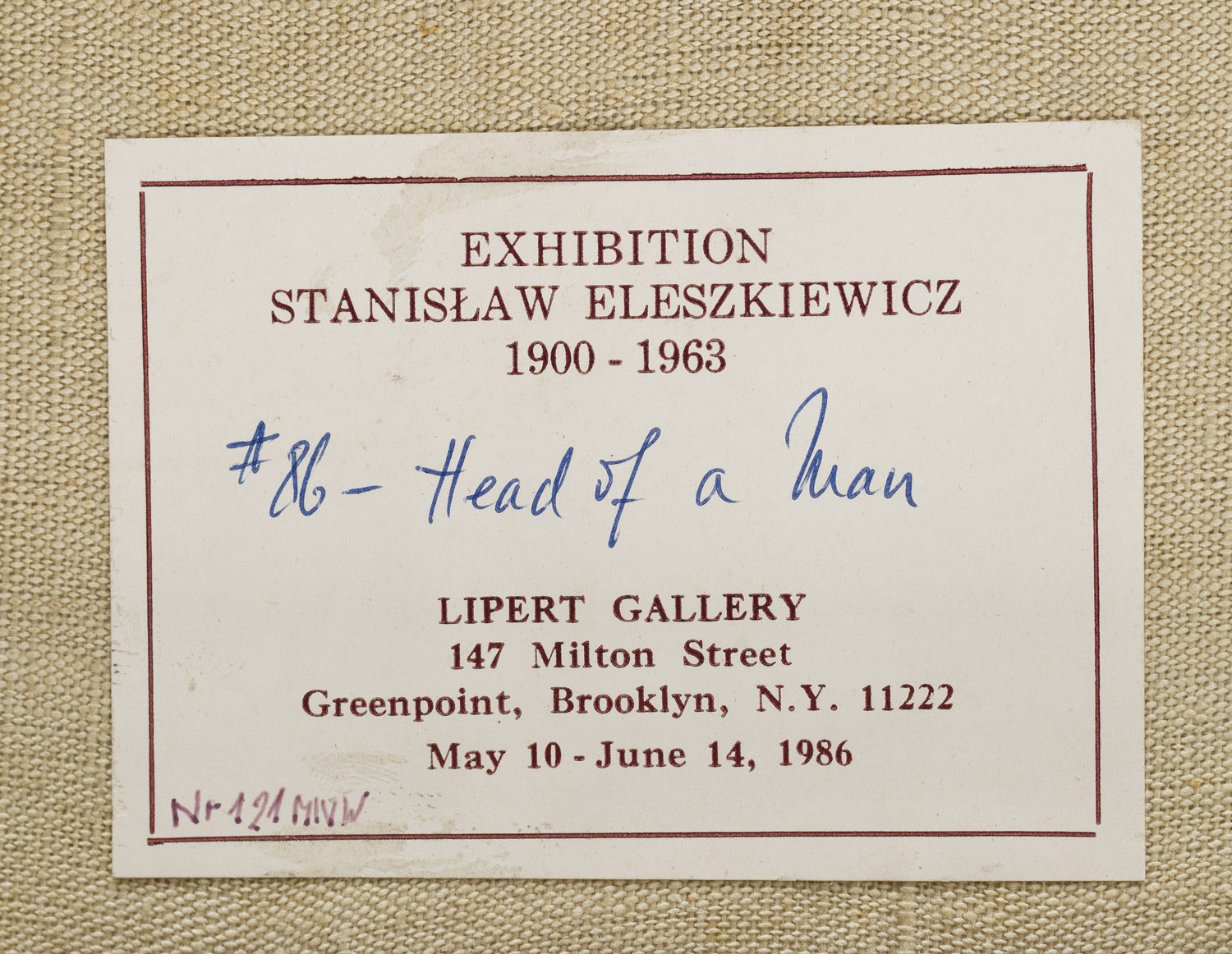 Exhibition Stanisław Eleszkiewicz 1900–1963, Lipert Gallery, Nowy Jork, 10 maja – 14 czerwca 1986