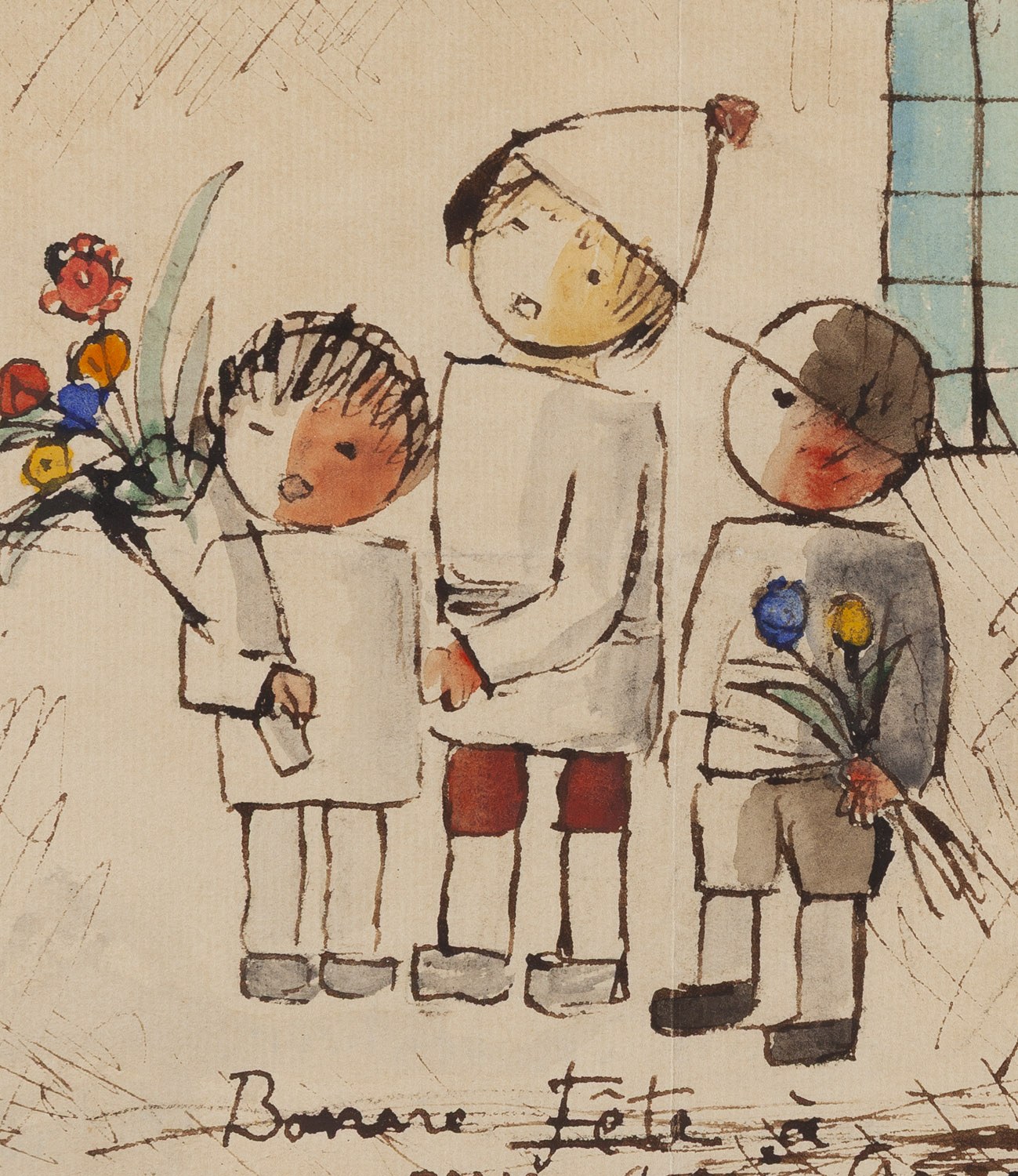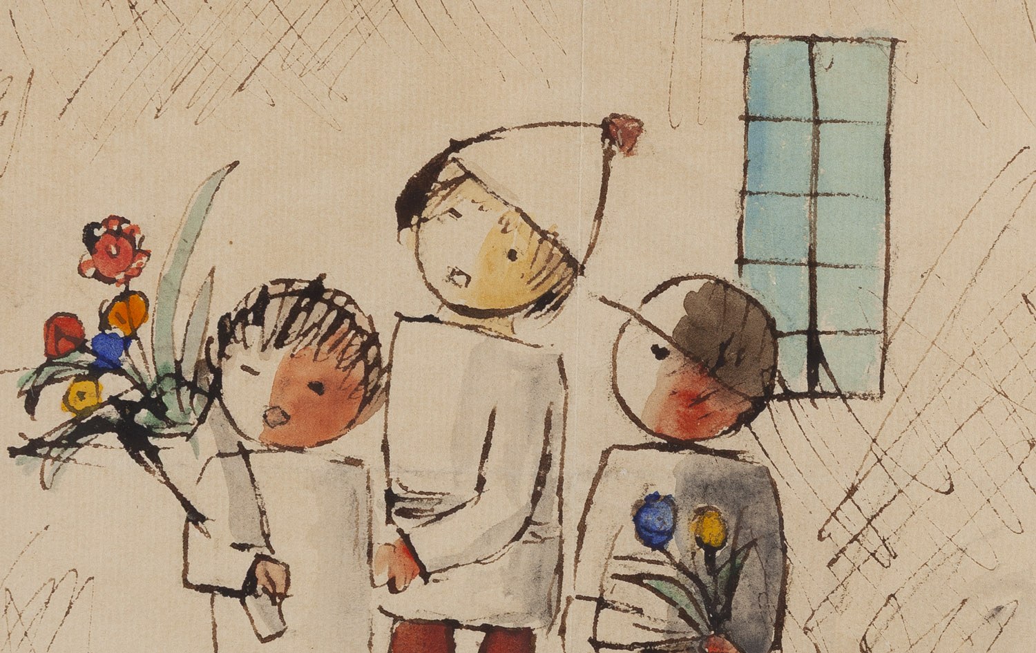 Tadeusz Makowski (1882 Oświęcim - 1932 Paryż), Troje dzieci z kwiatami, 1931