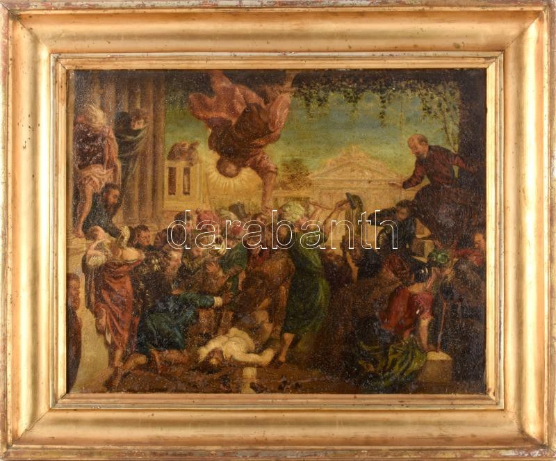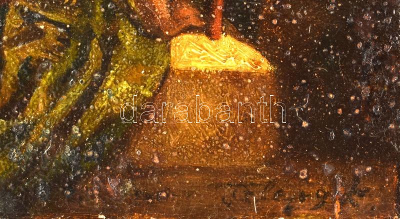 Telepy Károly (1828-1906): Bibliai jelenet. Olaj, vászon. Jelezve jobbra lent. Javított. Dekoratív, kissé kopott fakeretben, 35,5×46 cm
