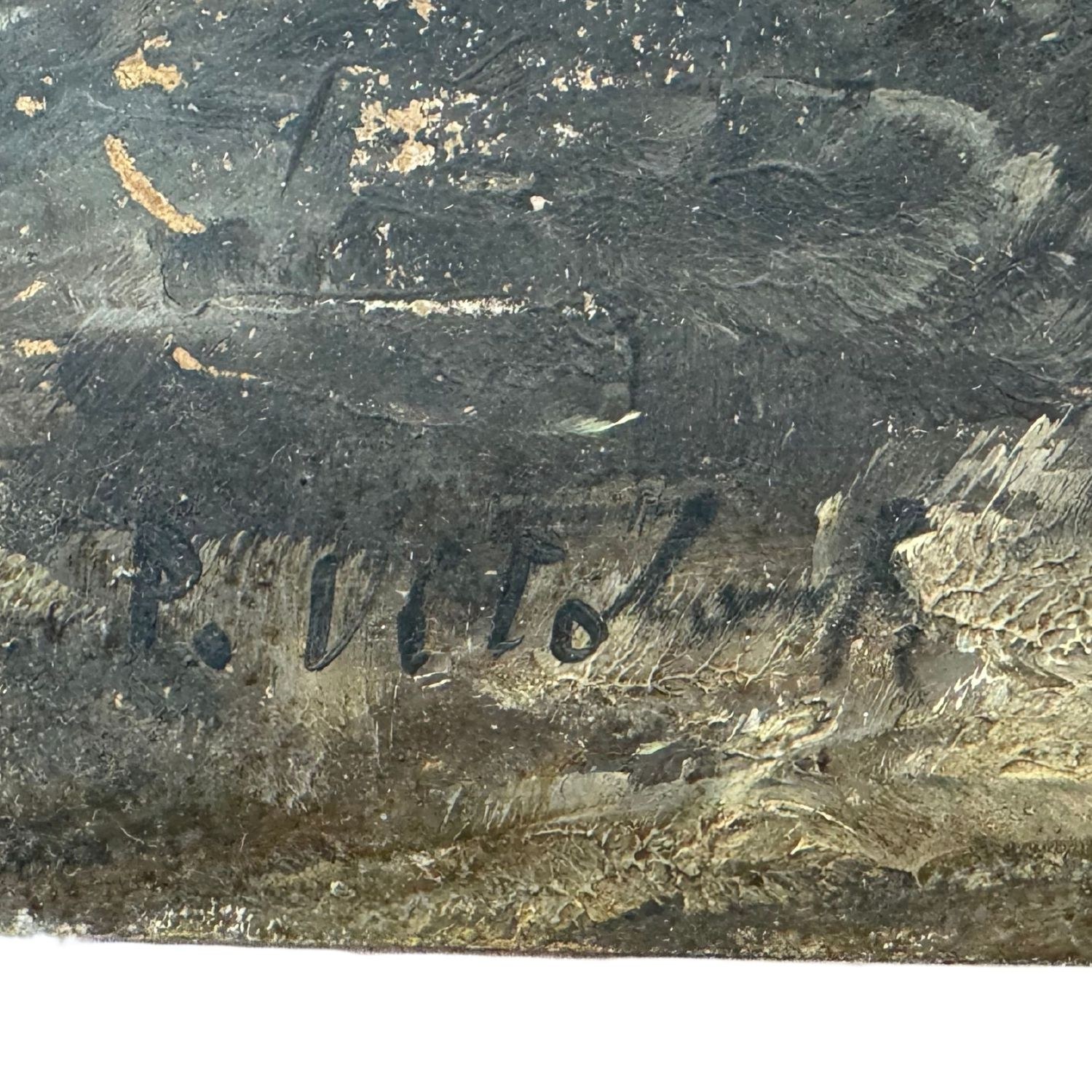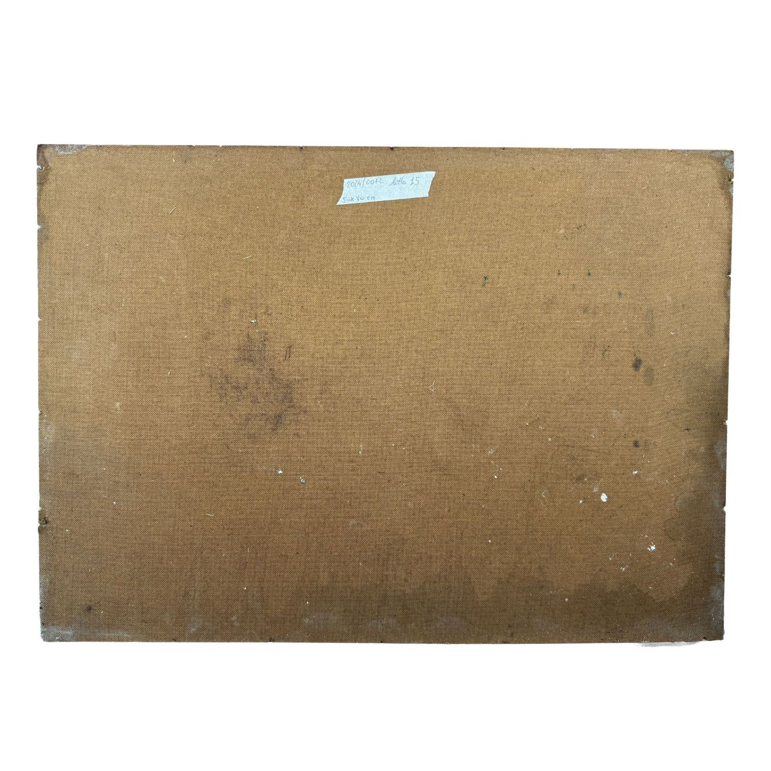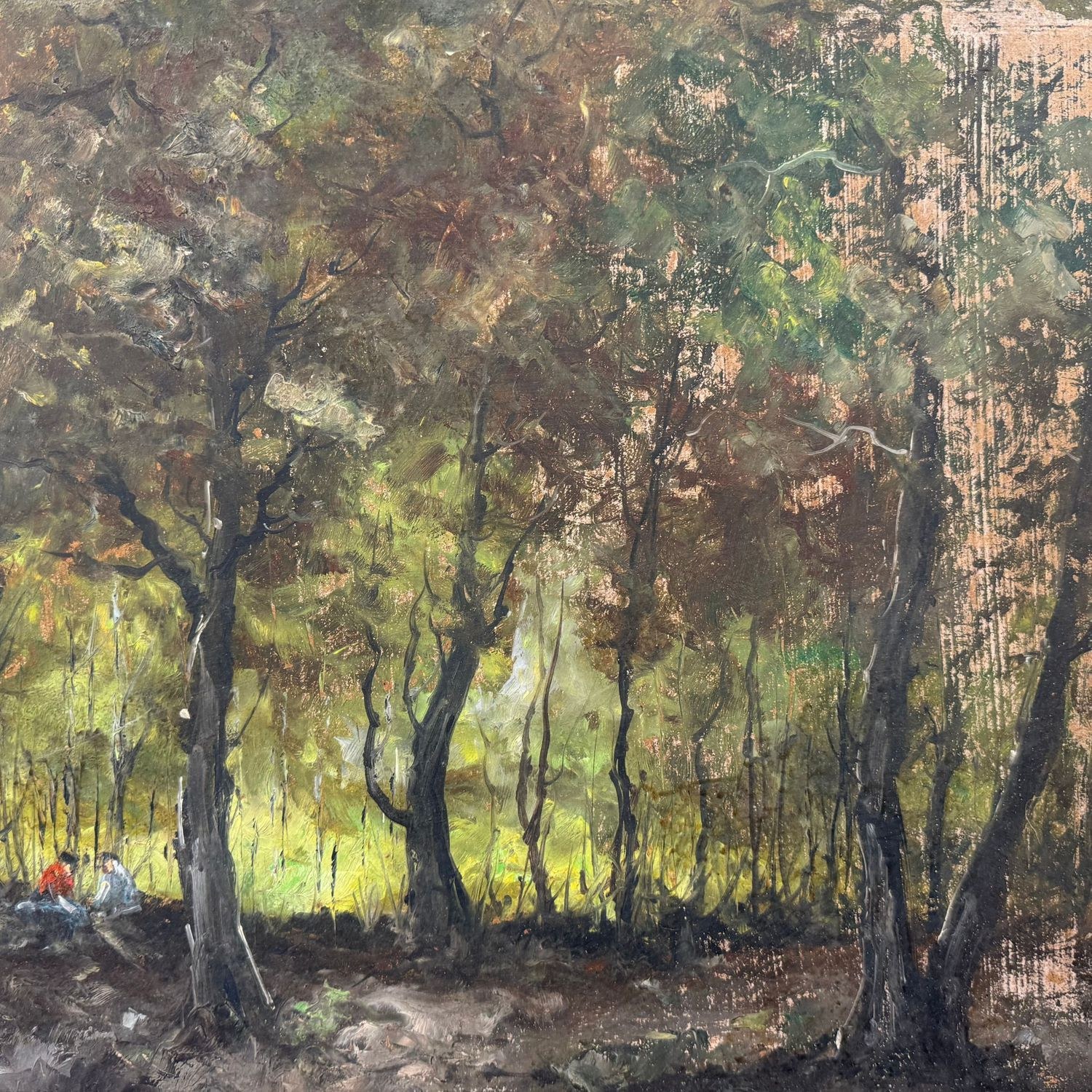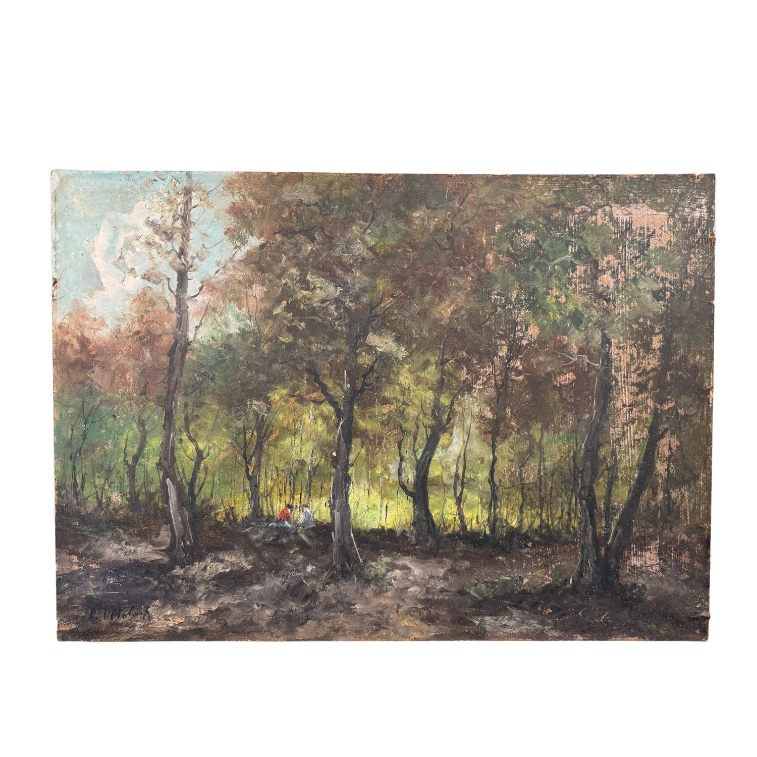 Oil painting on panel, from the 20th century, Italian school, depicting a forest.