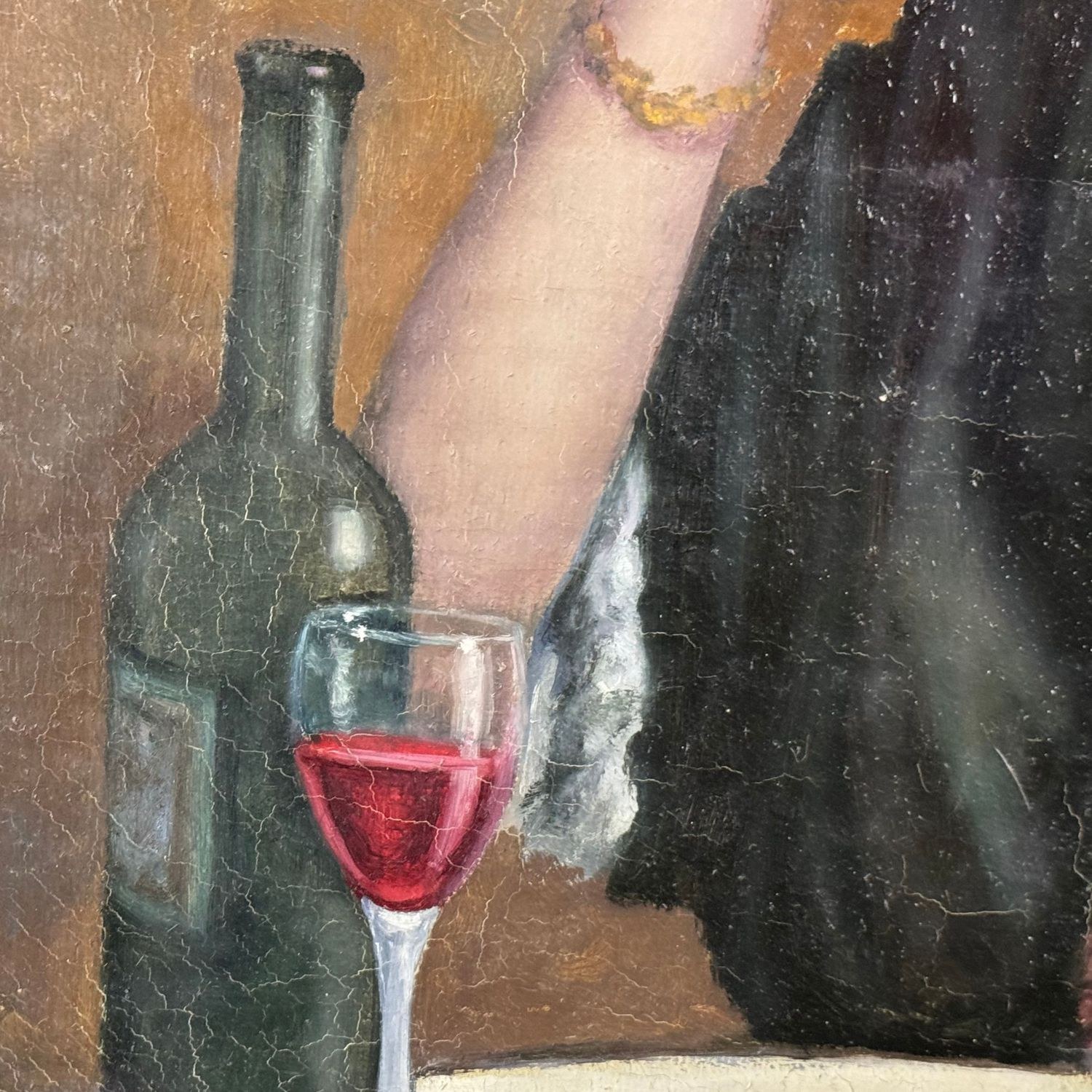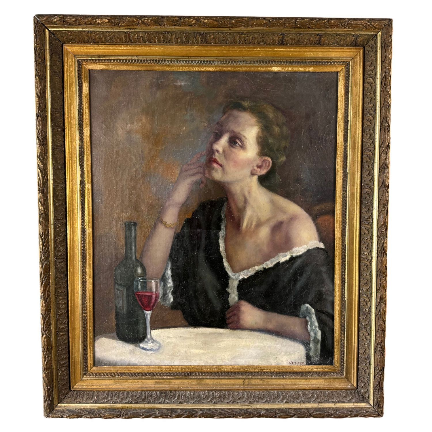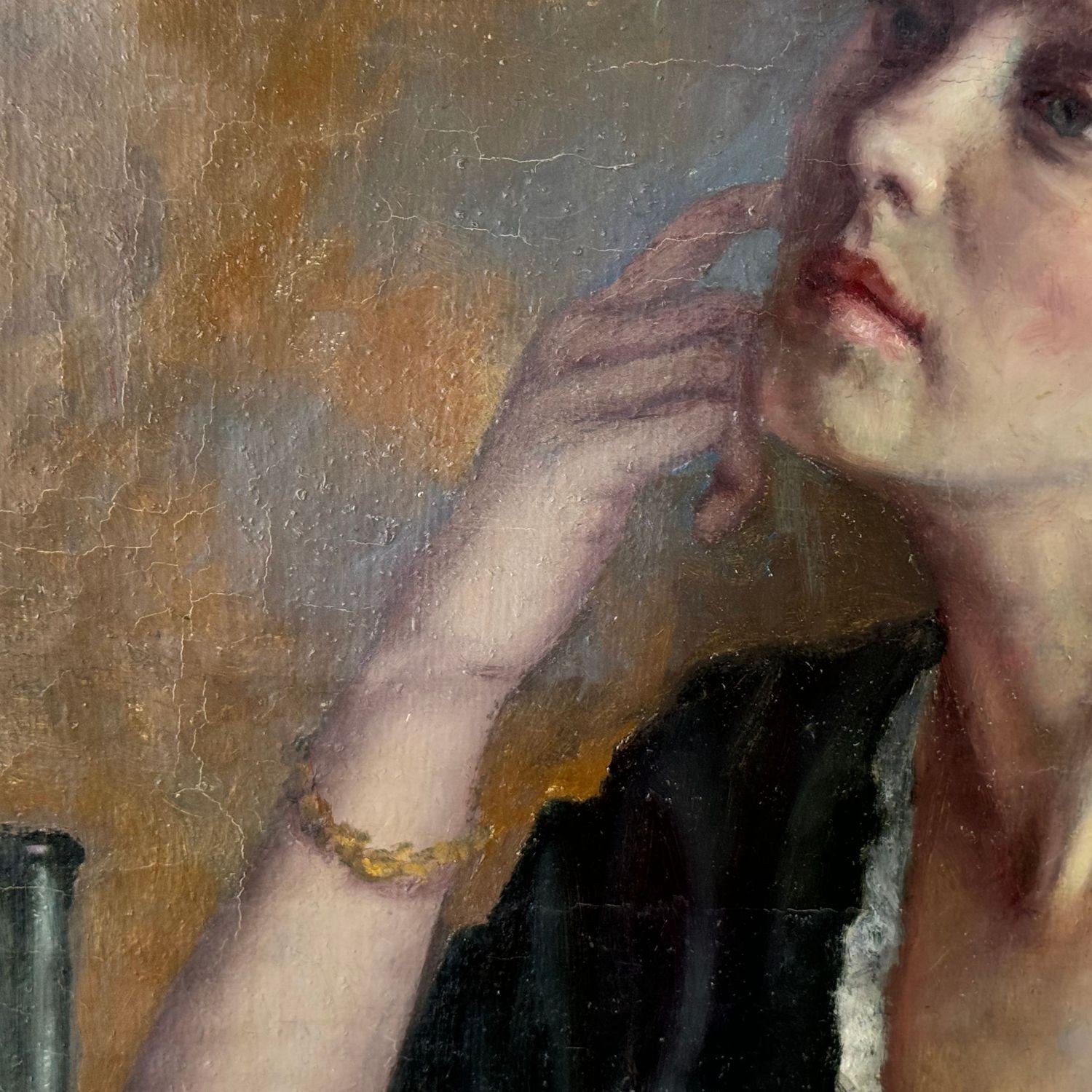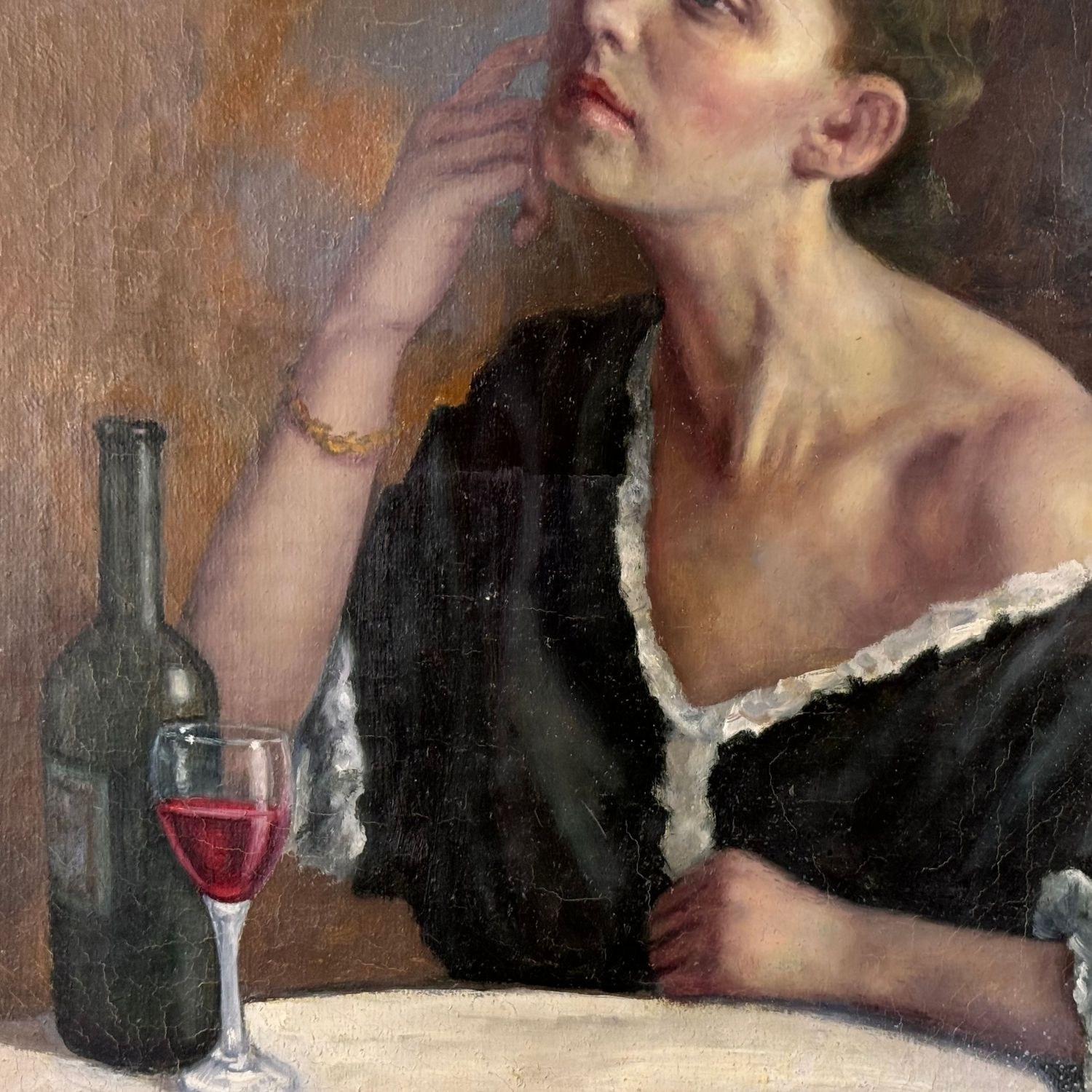Oil painting on canvas, 20th-century Italian school, depicting a portrait of a woman. Dimensions within the frame: 54x66 cm. Dimensions including the frame: 71x82 cm. It bears a signature at the bottom right that is difficult to read. The artwork is in good condition with slight signs of wear as shown in the attached photos.