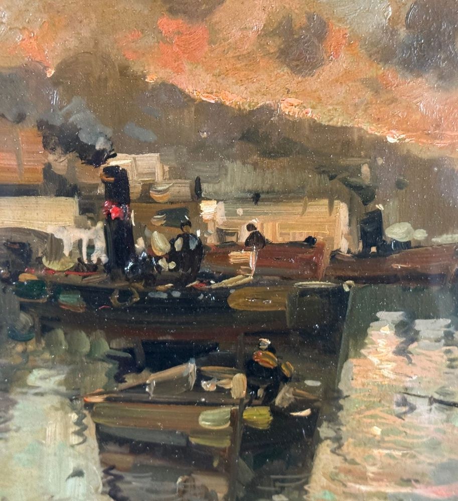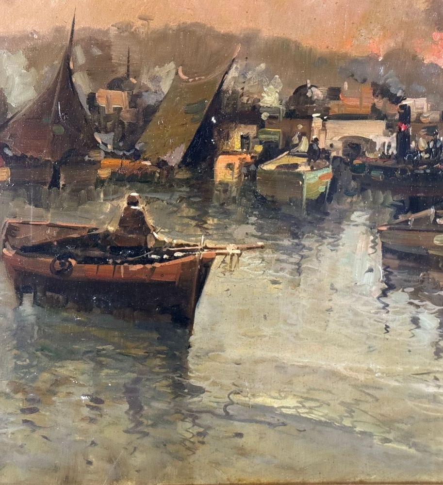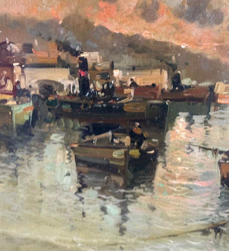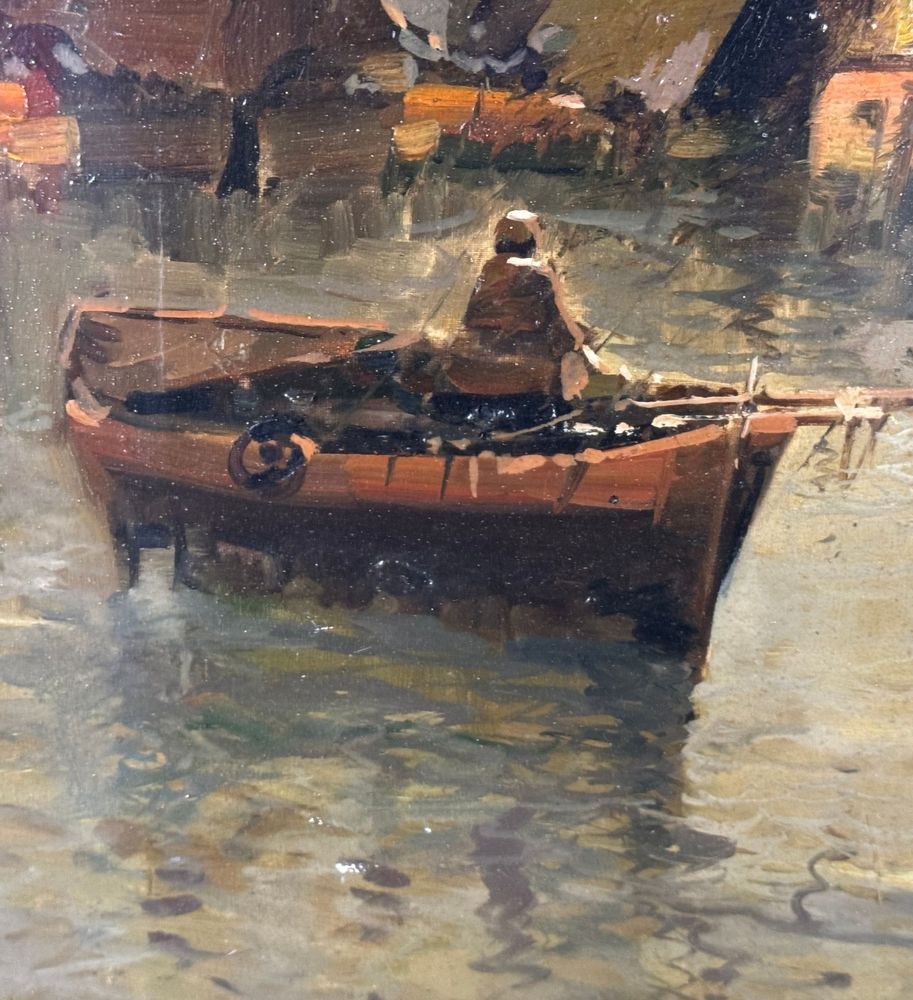 Oil painting on canvas, 20th century, Neapolitan school, depicting *Scorcio di marina napoletana* (View of the Neapolitan Seaside). Dimensions including frame: 56x86 cm. Dimensions inside the frame: 40x70 cm. Signed at the bottom right by an unidentified artist. The work is in good condition.