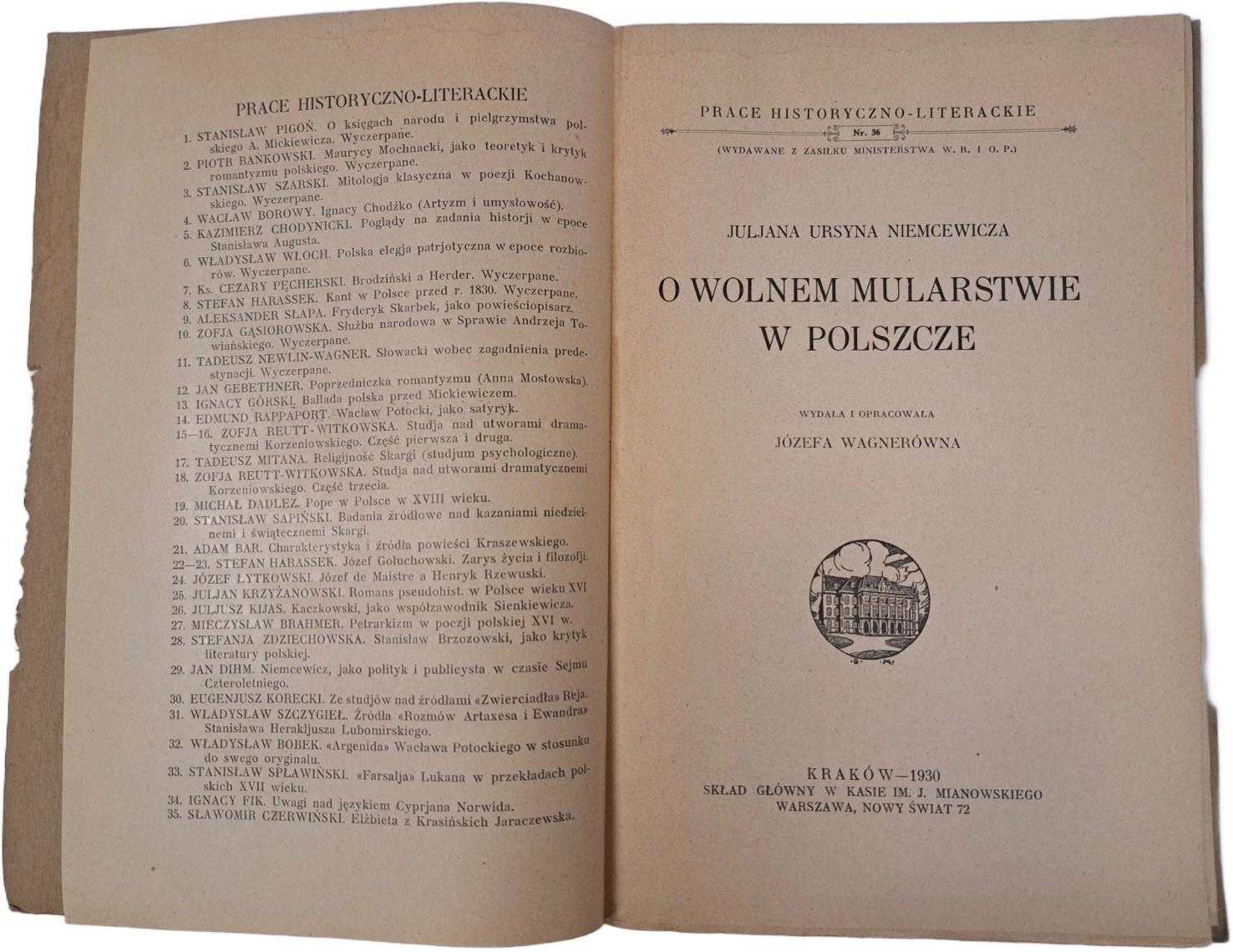 Juljana Ursyna Niemcewicza O wolnem mularstwie w Polszcze
