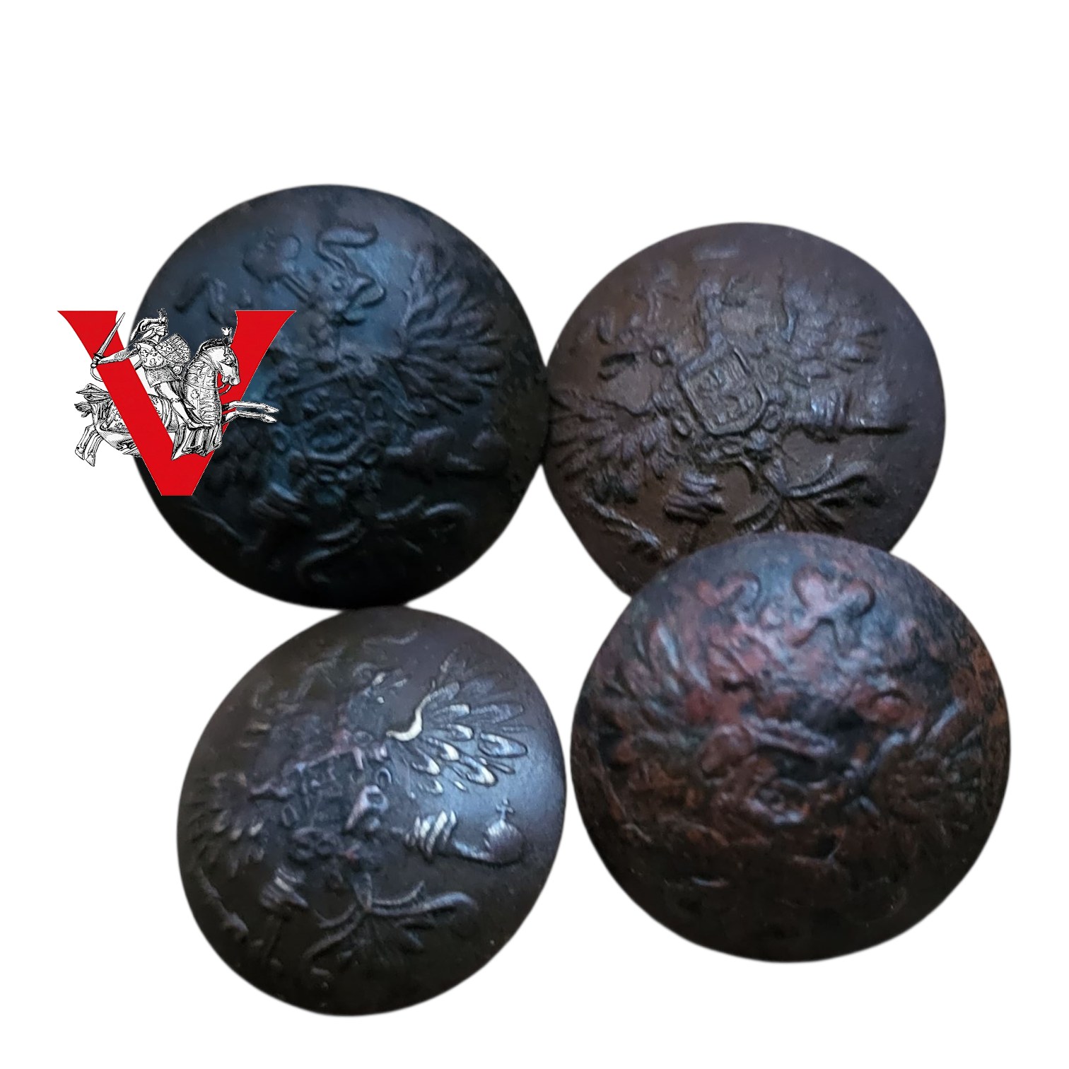 Cztery carskie guziki, sygnowane