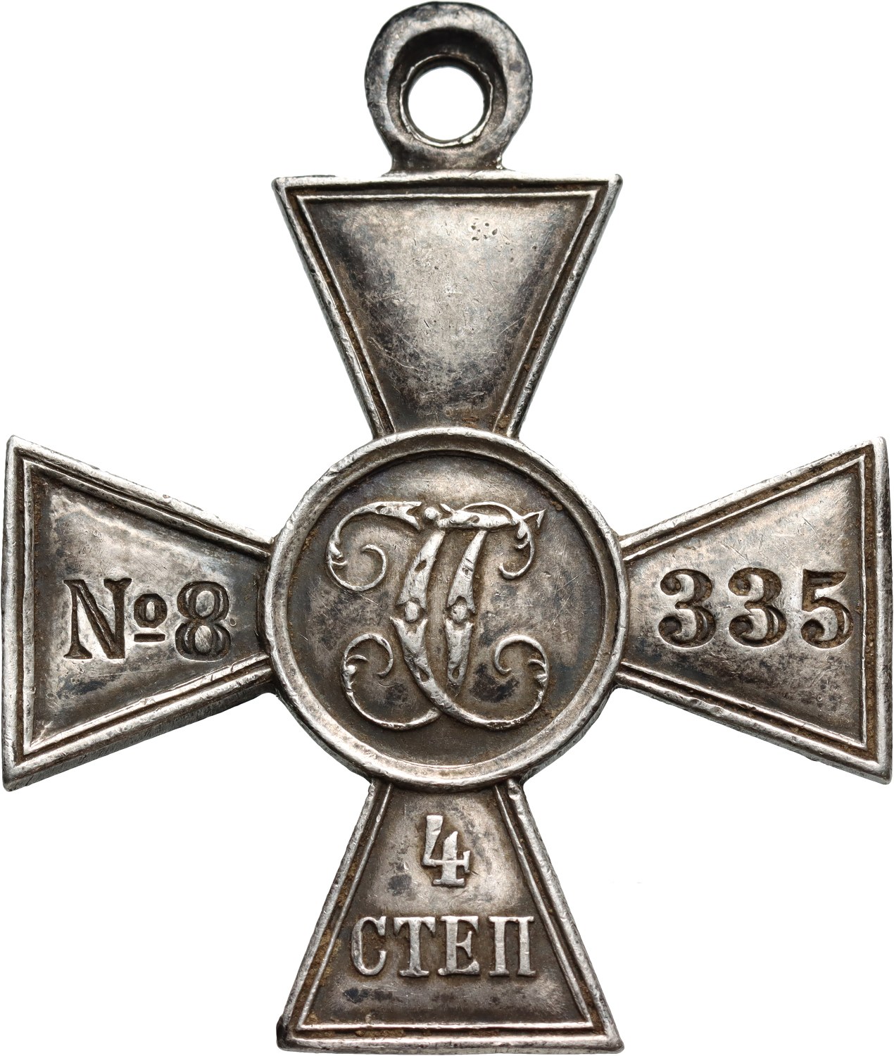 Srebro, waga 11,52 g. Wymiary 34 x 41 mm, nadany Daniłowi Seliwanowowi z 31 Dońskiego Kozackiego Pułku za walki na terenie dzisiejszych Mazur podczas I Wojny Światowej. Bardzo ciekawa wersja krzyża tzw "pierieriezka". Krzyż przerobiony przez producenta z partii krzyży rozdawanych w czasie wojny rosyjsko-japońskiej.