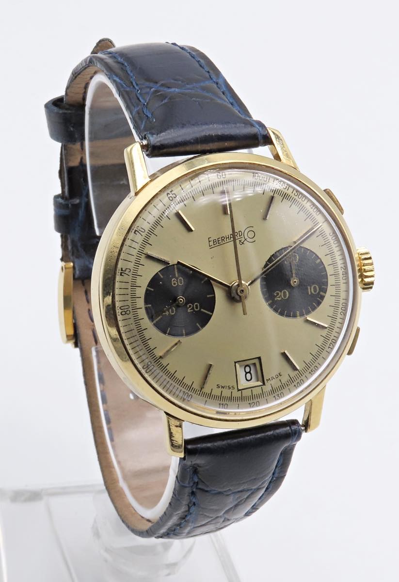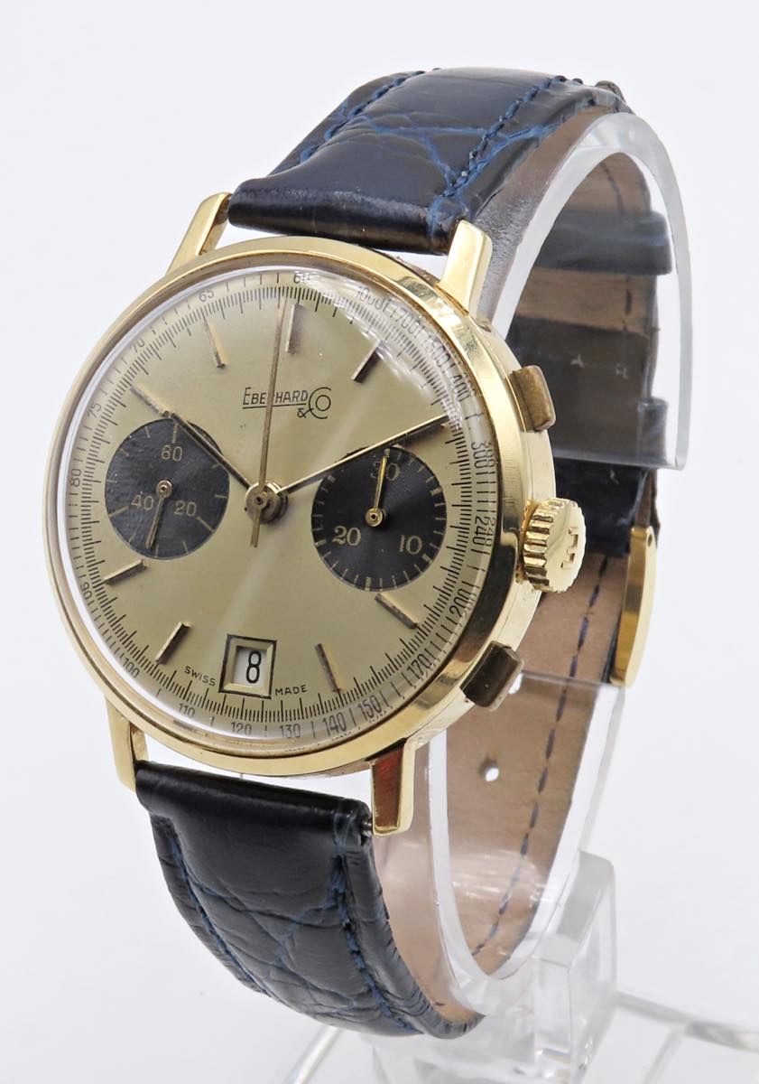 EBERHARD -Cronografo - PANDA -Referenza 31507. Movimento a carica manuale. Cassa in oro giallo 18kt con diametro da 36mm. Dial champagne a due contatori a contrasto neri (da qui il nome â