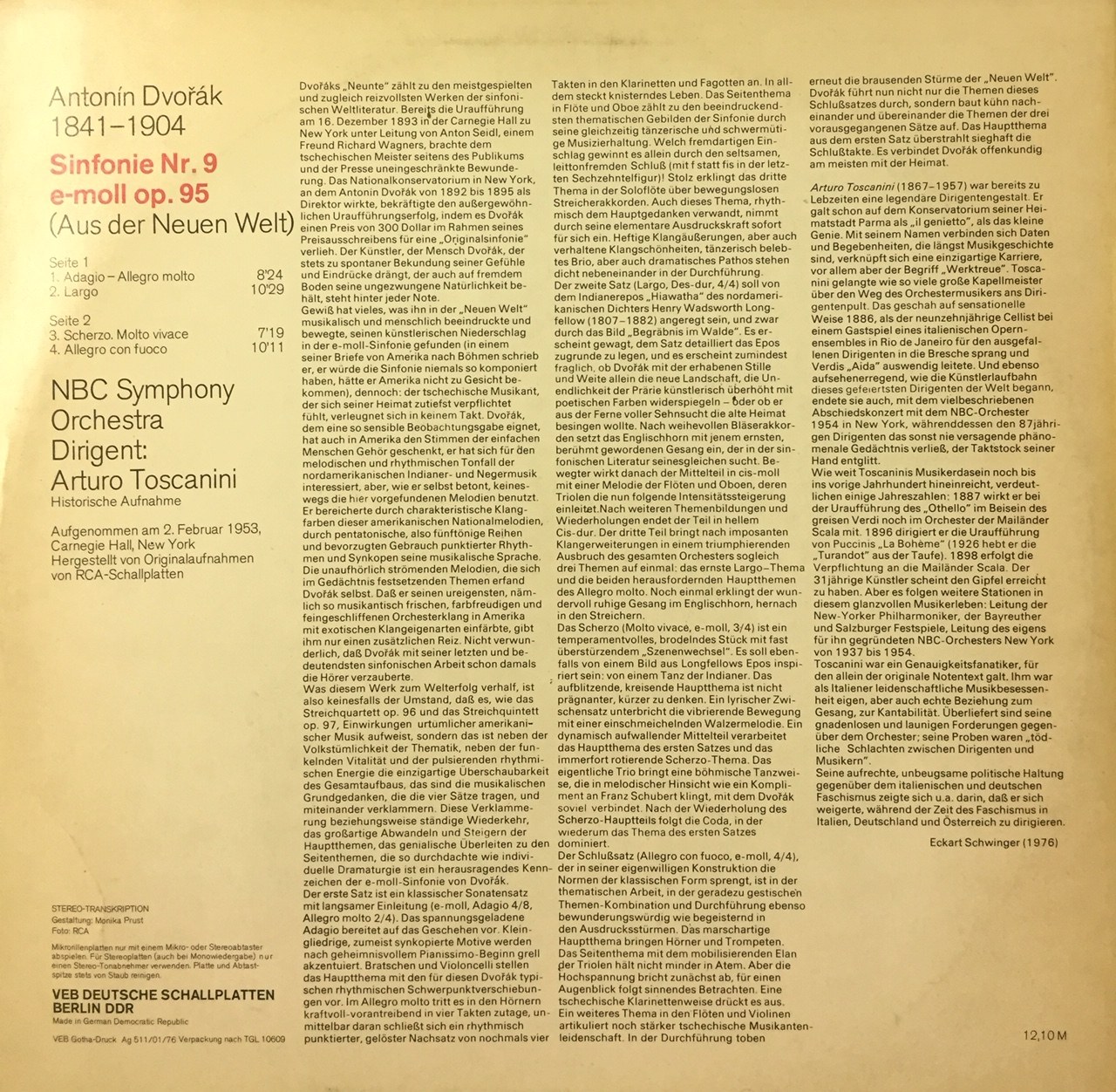 Najsłynniejsza symfonia A. Dvoraka, skomponowana z okazji pobytu kompozytora w Stanach Zjednoczonych (1892-1895). W wykonaniu NBC Symphony Orchestra pod batutą Arturo Toscaniniego.