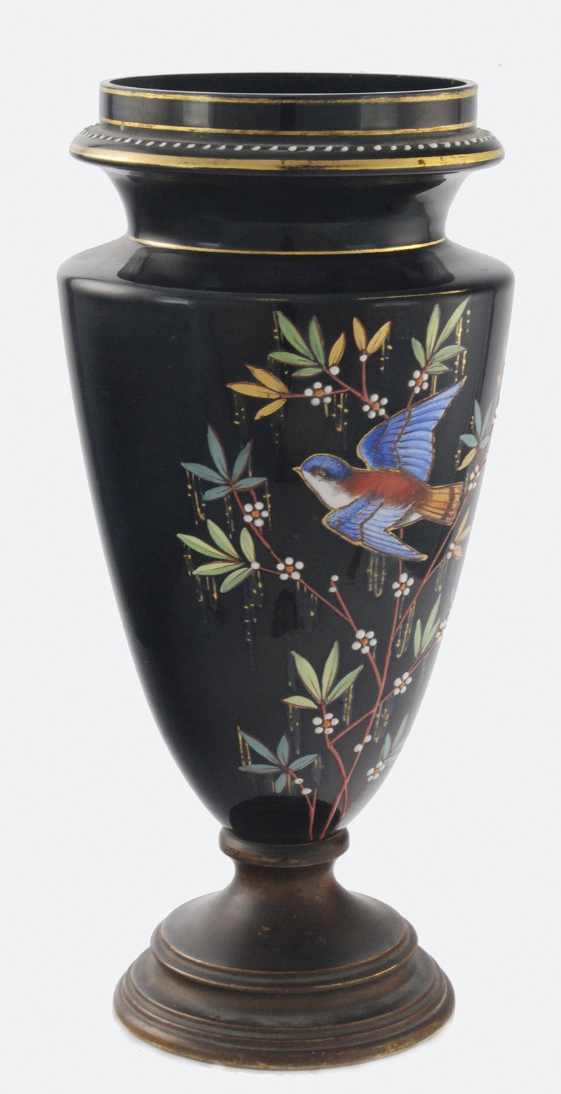 szkło rubinowe, powlekane kobaltem, farby emaliowe, złocenie, mosiądz; Europa Środkowa, XIX/XX w.