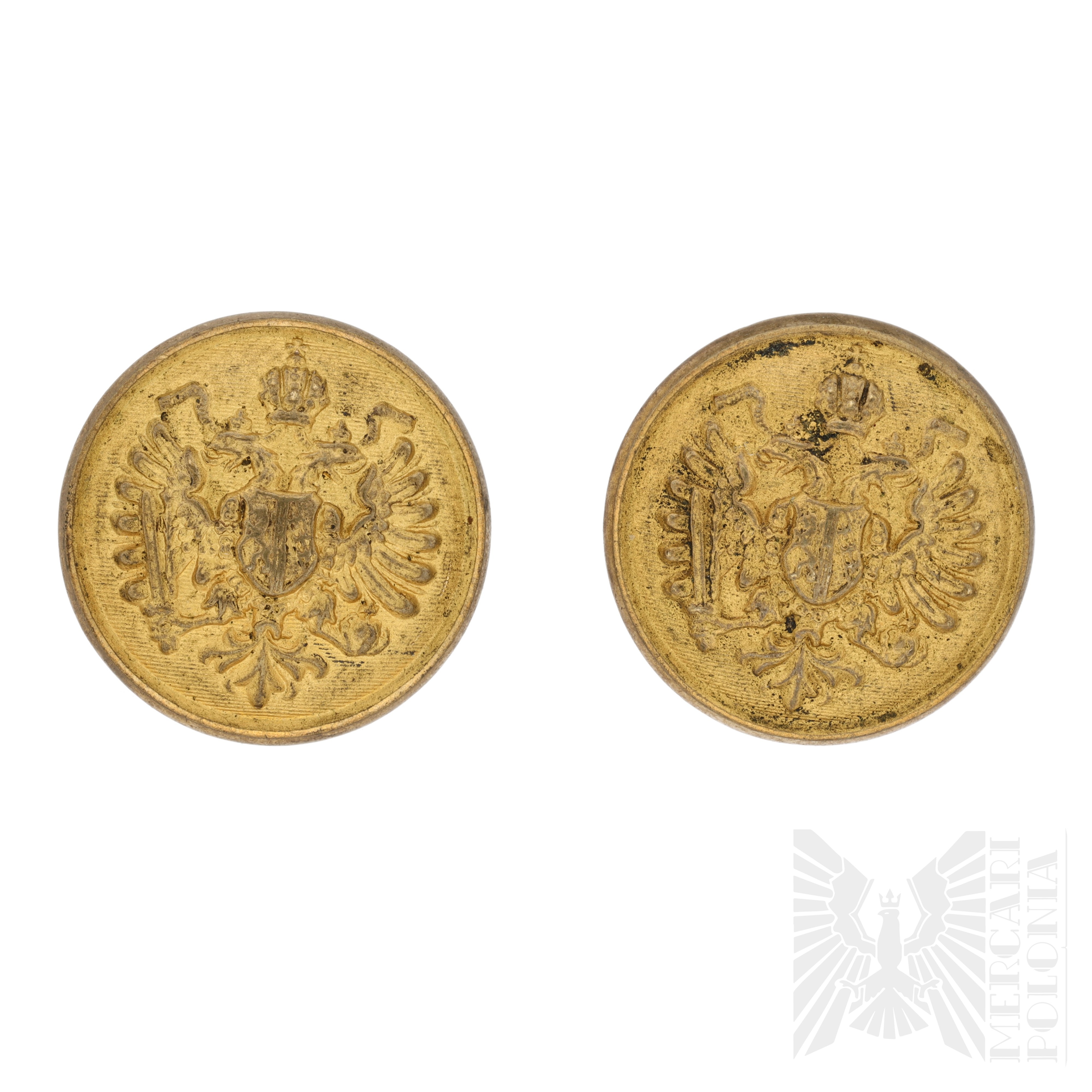 Dwa guziki używane przez urzędników w Austro-Węgrzech, na guzikach umieszczony Habsburski orzeł.