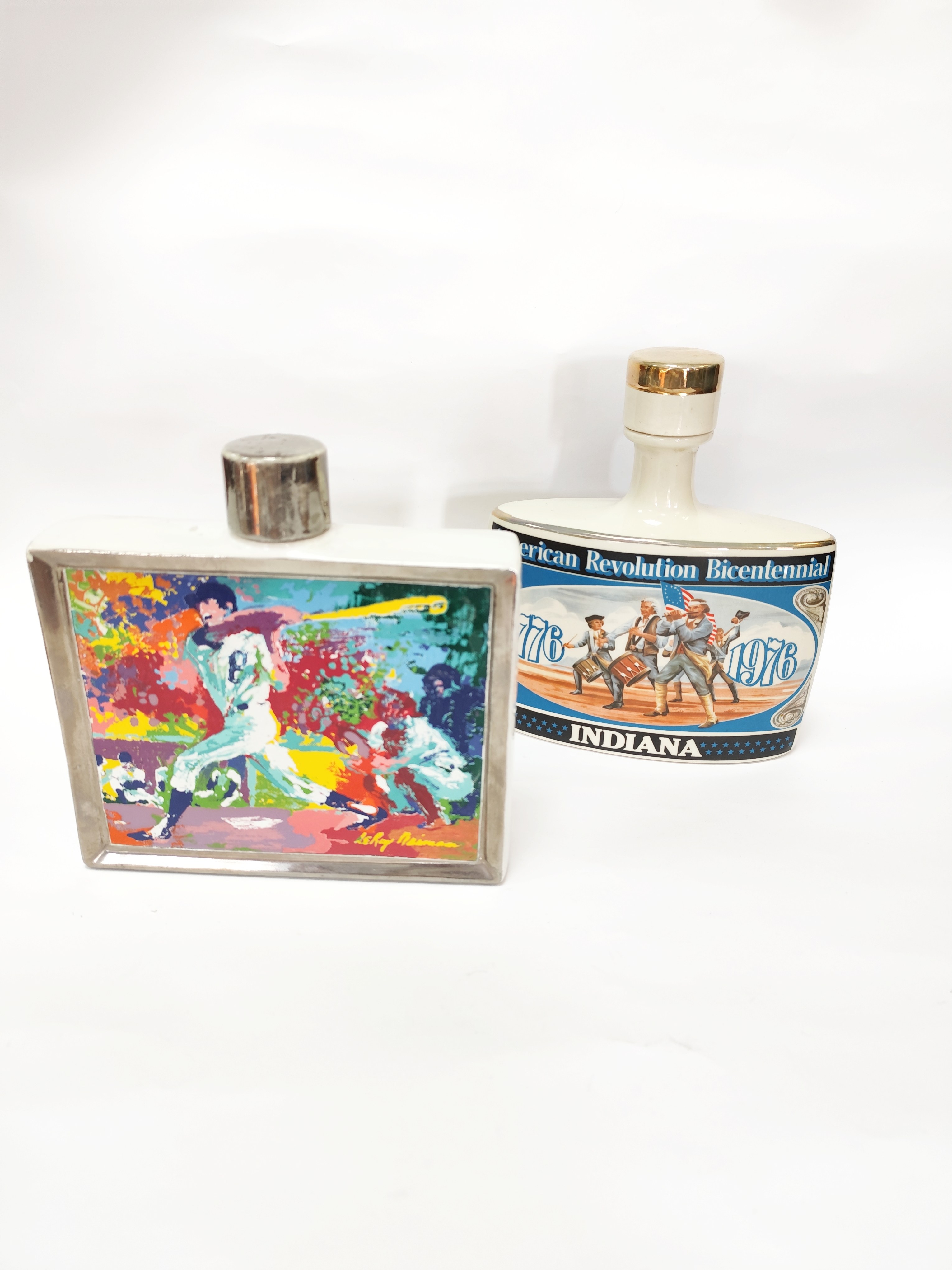 Pamiątkowe porcelanowe butelki po Whiskey. USA, dzień niepodległości 1976 oraz LeRoy Neiman