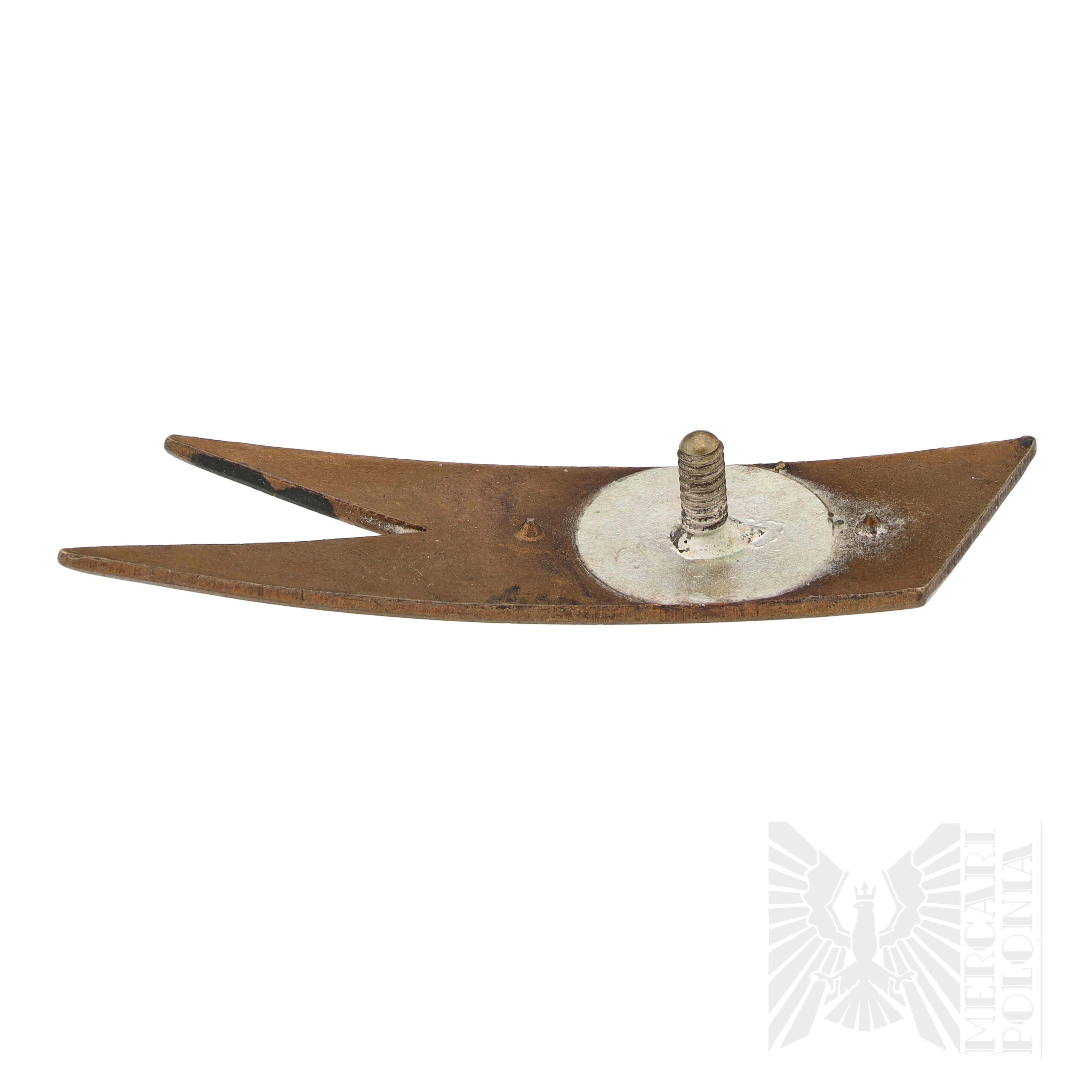 Proporczyk na beret, w kolorze żółto-czerwonym, używanych przez żandarmerię wojskową. Wykonany z mosiądzu, malowany. Na rewersie słupek z nakrętką.