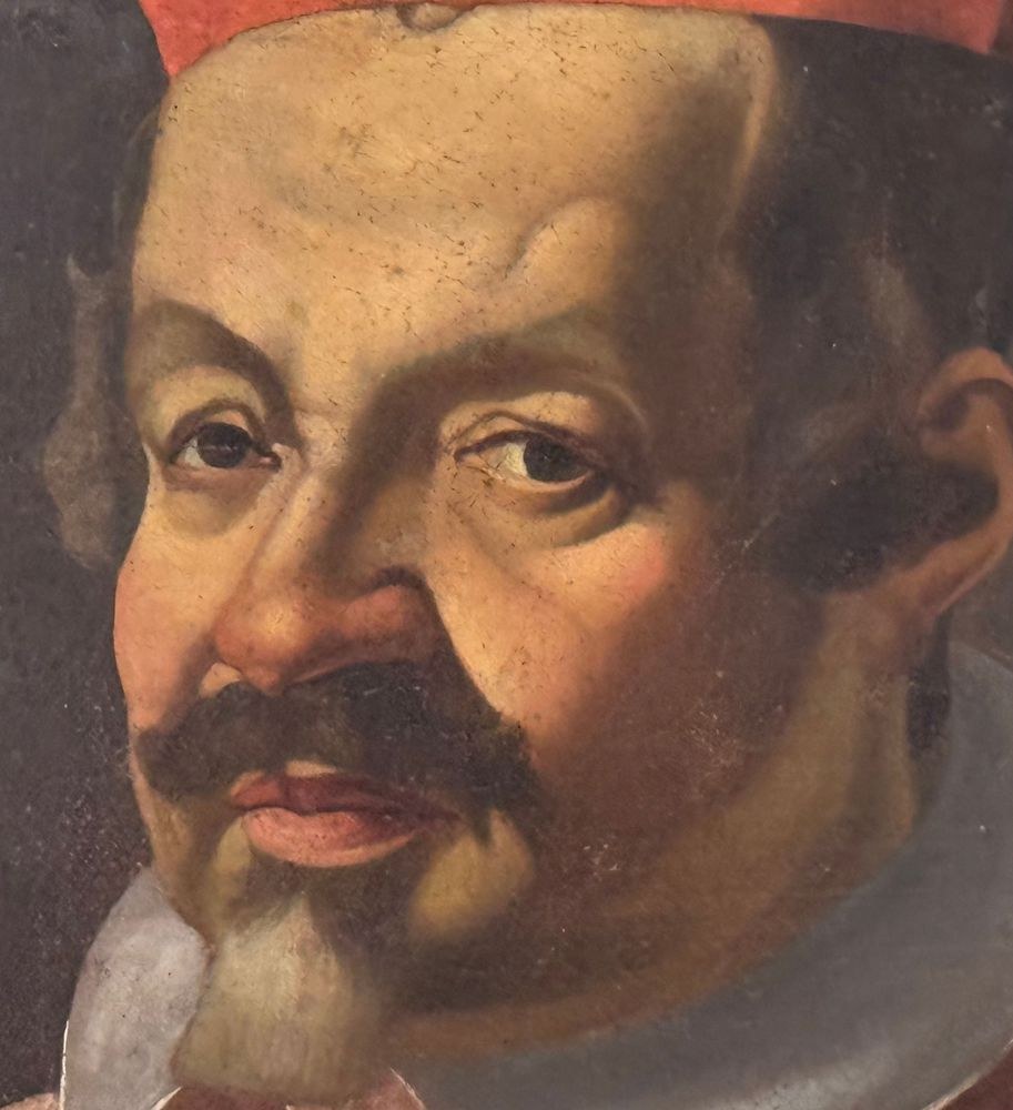 Oil painting on canvas, 18th/19th century, Italian school, depicting a Portrait of a Cardinal. Dimensions including frame: 83x95 cm. Inner frame dimensions: 51x64 cm. By an anonymous artist. The work is in good condition with slight signs of age, as shown in the attached photos.