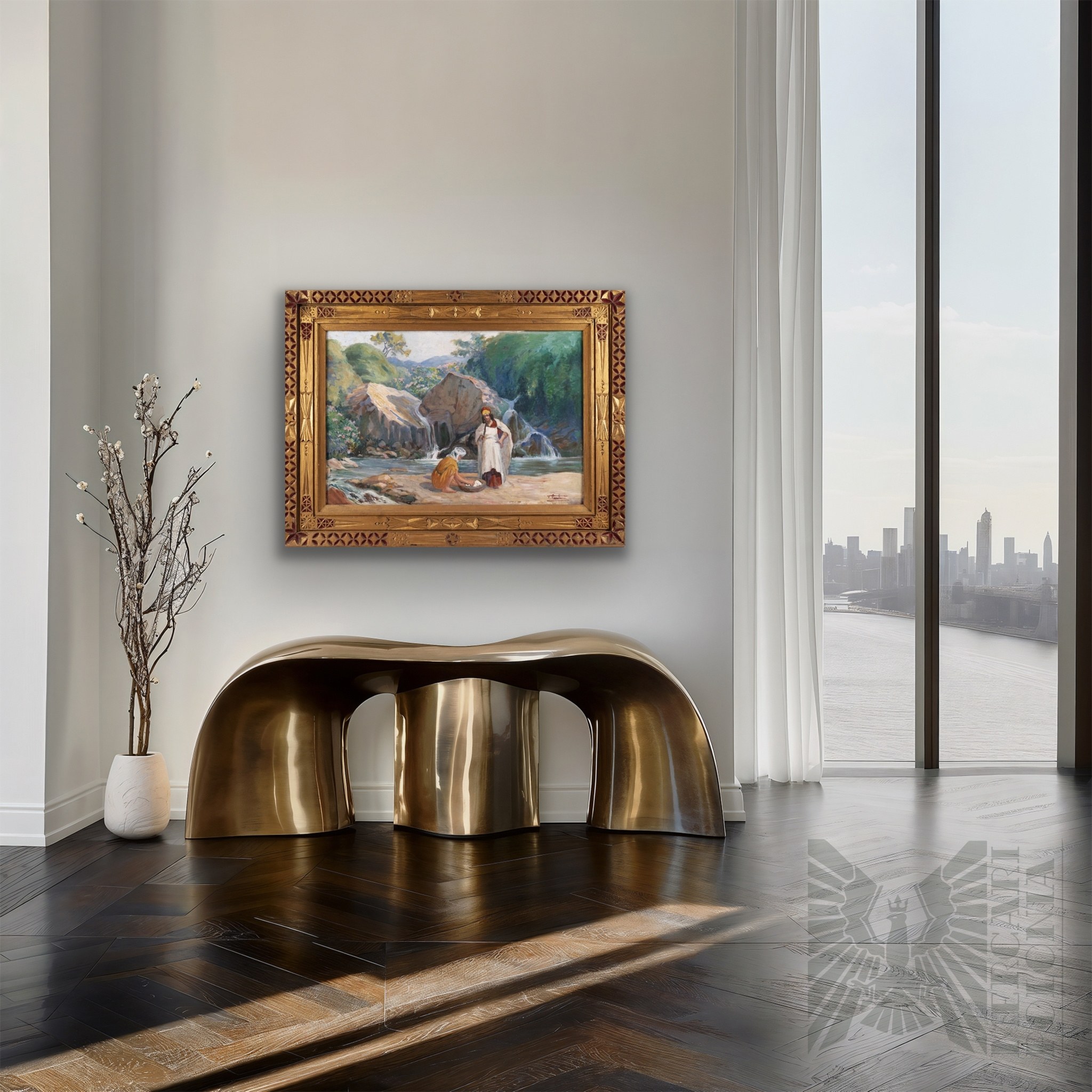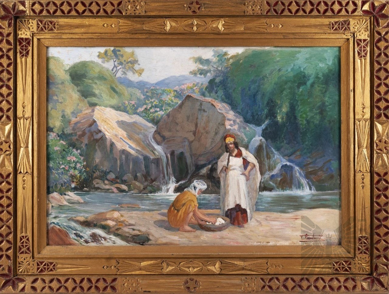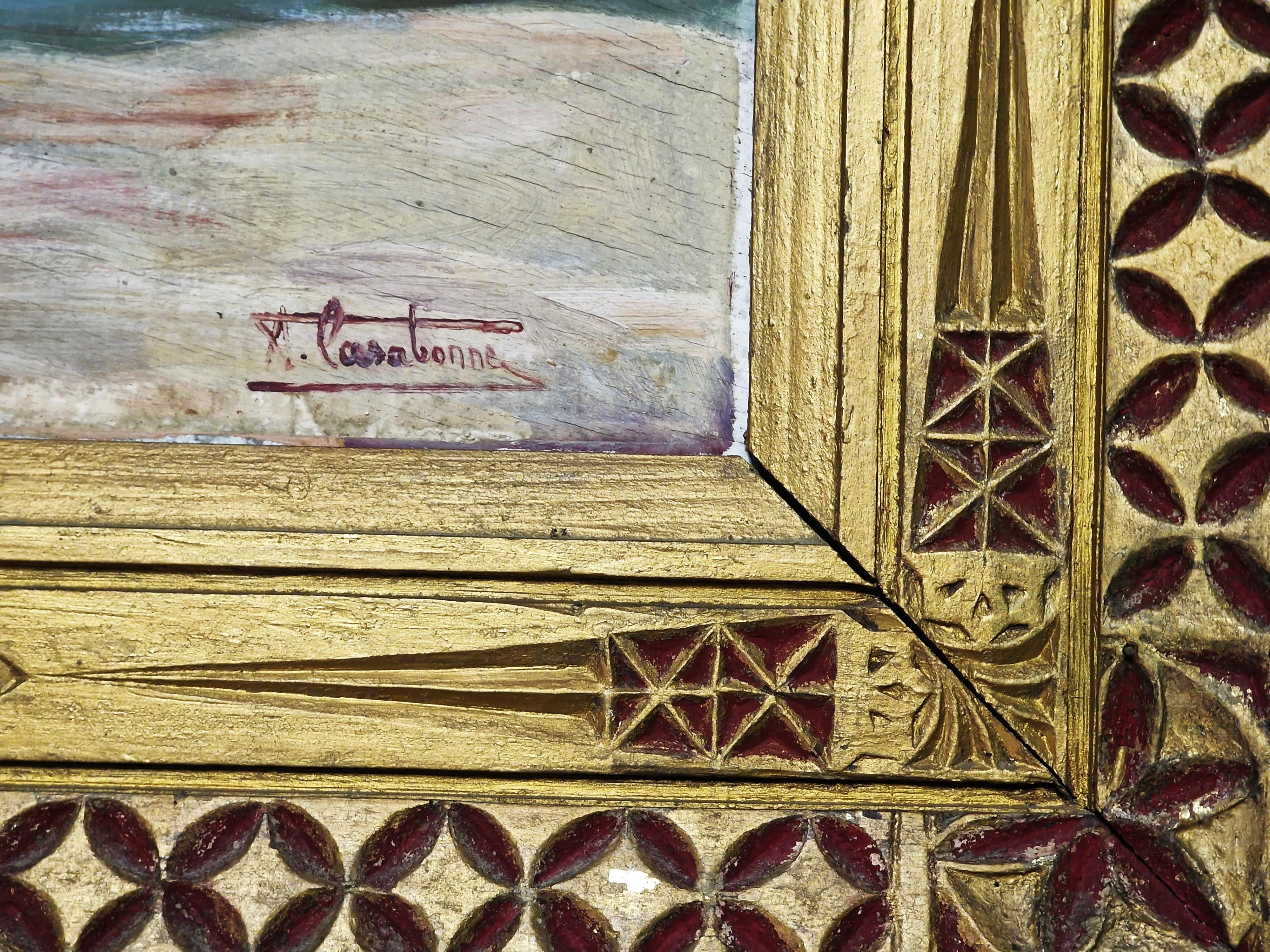 Olej na płycie drewnianej, 50 x 72 cm w podwójnej, ręcznie rzeźbionej ramie o wym. 72 x 93 cm;sygn.. p.d. „A Casabone”.