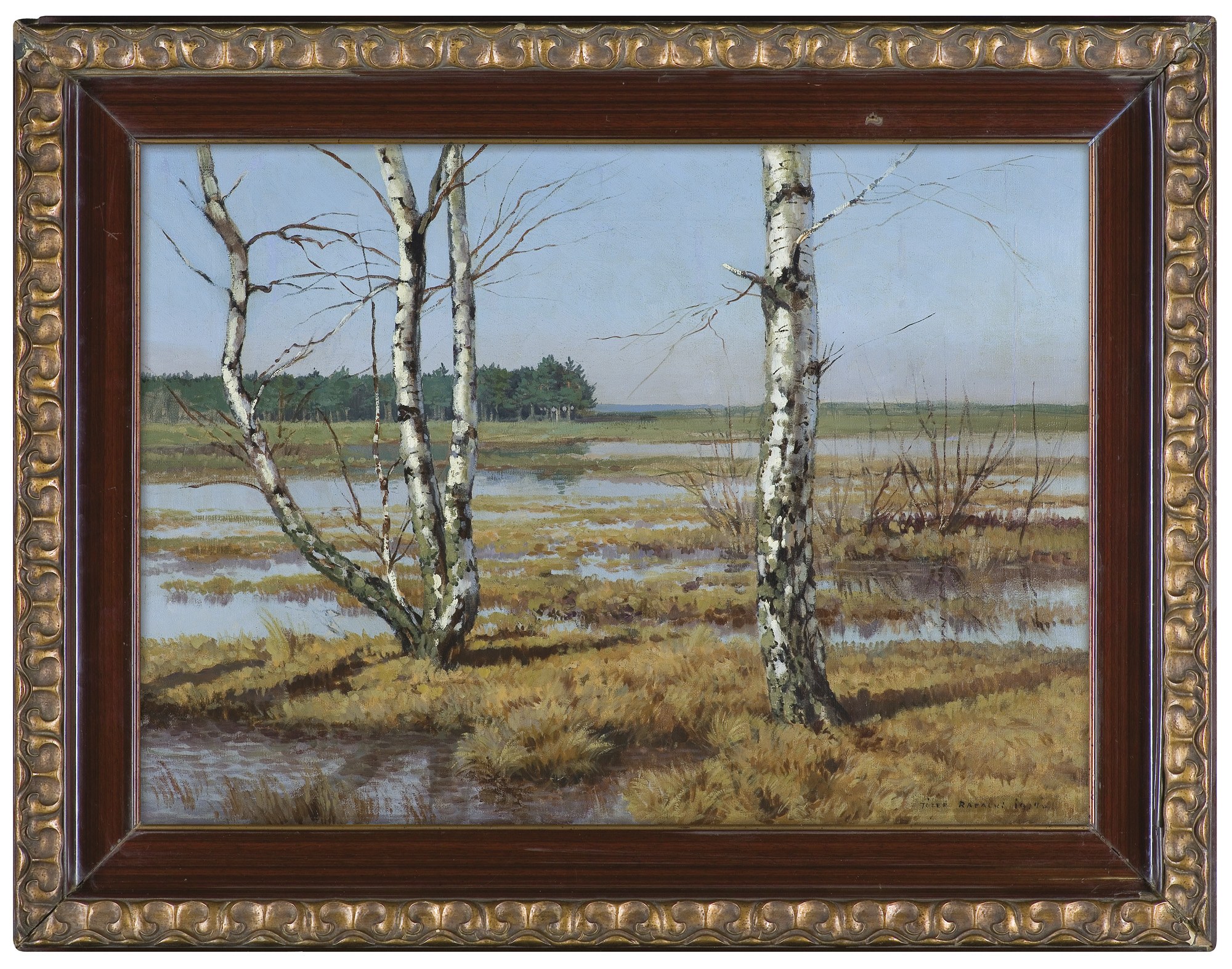 Józef Rapacki (Warszawa 1871 – Olszanka k. Skierniewic 1929) nazywany „malarzem brzóz i liliowych wrzosów“, był jednym z najpopularniejszych pejzażystów warszawskich końca XIX i pierwszej ćwierci XX wieku. Edukację malarską rozpoczął jako uczeń Wojciecha Gersona w Warszawskiej Klasie Rysunkowej. Później studiował jeszcze w Szkole Sztuk Pięknych w Krakowie pod kierunkiem Floriana Cynka (1886-1887) oraz w Monachium w prywatnej szkole Friedricha Fehra (1888-1889). Po studiach kilkakrotnie podróżował do Włoch. Brał udział w licznych wystawach w TZSP w Warszawie oraz we Lwowie (1894 srebrny medal), Krakowie, Wilnie, Kielcach. Wystawiał też za granicą - w Berlinie (1893) czy w Paryżu, gdzie w 1900 został odznaczony dyplomem na Powszechnej Wystawie Światowej. Należał do grupy „Pro Arte“. Od roku 1907 stale mieszkał w Olszance, wiosce na skraju Puszczy Mariańskiej, niedaleko Skierniewic. Malował przede wszystkim realistyczne, nastrojowe pejzaże oraz rozgrywające się w pejzażu sceny rodzajowe, a także portrety i wnętrza. Uprawiał grafikę (teki Z dawnej i niedawnej Warszawy oraz Pro memoria. Prusak w Polsce), zajmował się ilustratorstwem książkowym, współpracował z warszawskimi czasopismami, m.in. „Tygodnikiem Ilustrowanym“, „Wędrowcem“ „Światem“, „Biesiadą Literacką“.
