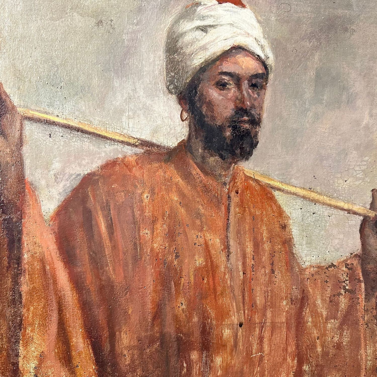 Arab Portrait Painting, 19th - 20th century, canvas with defects and shortcomings. Dimensions: 55x46