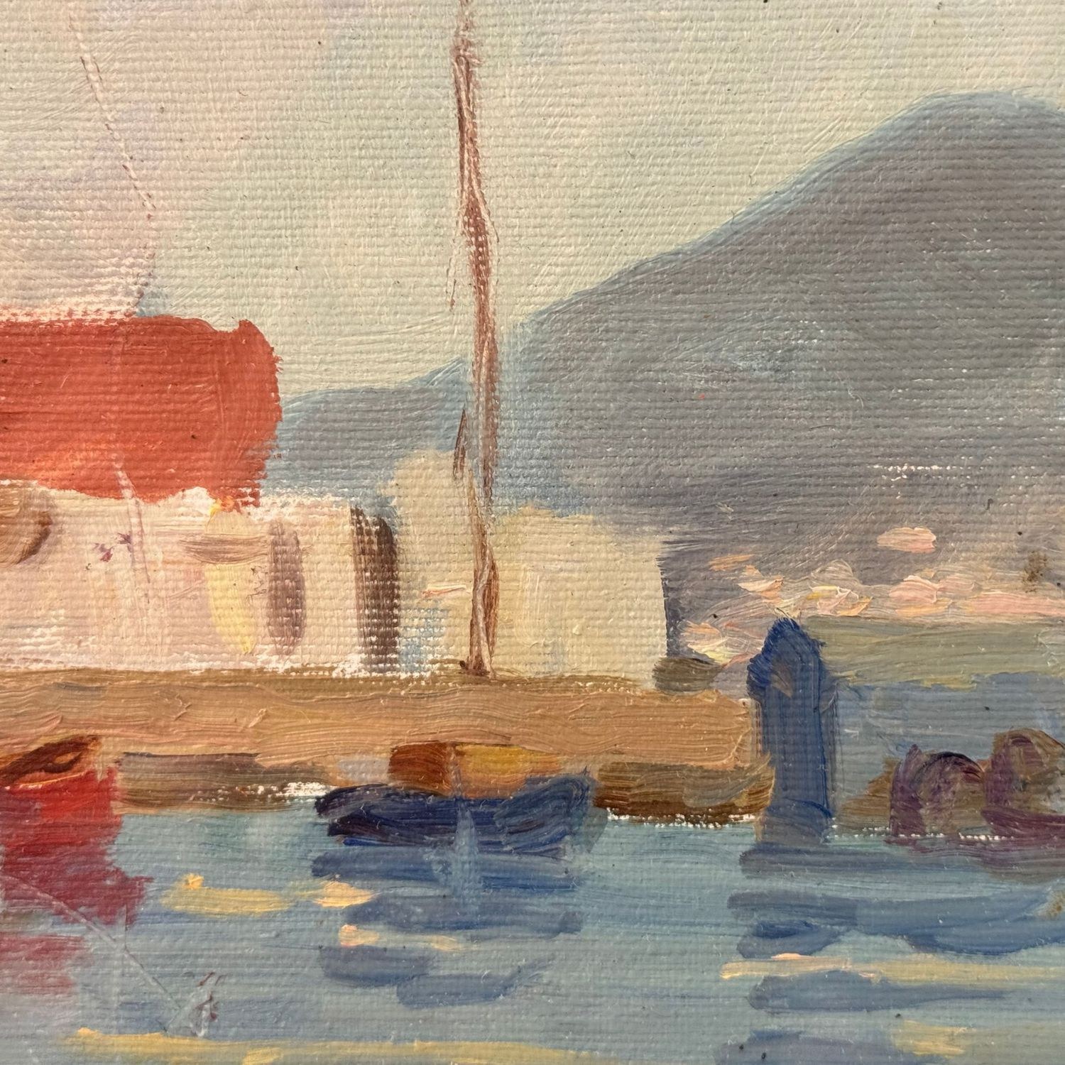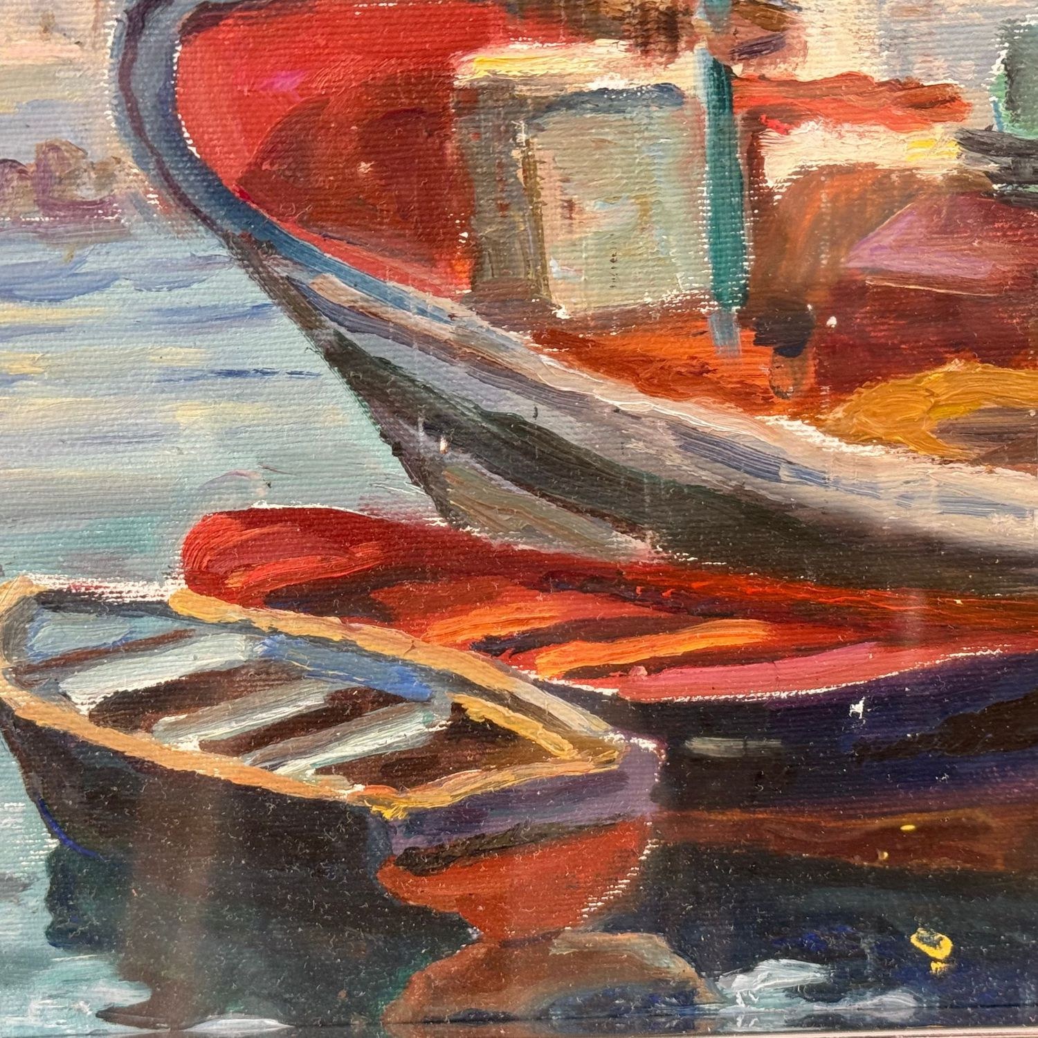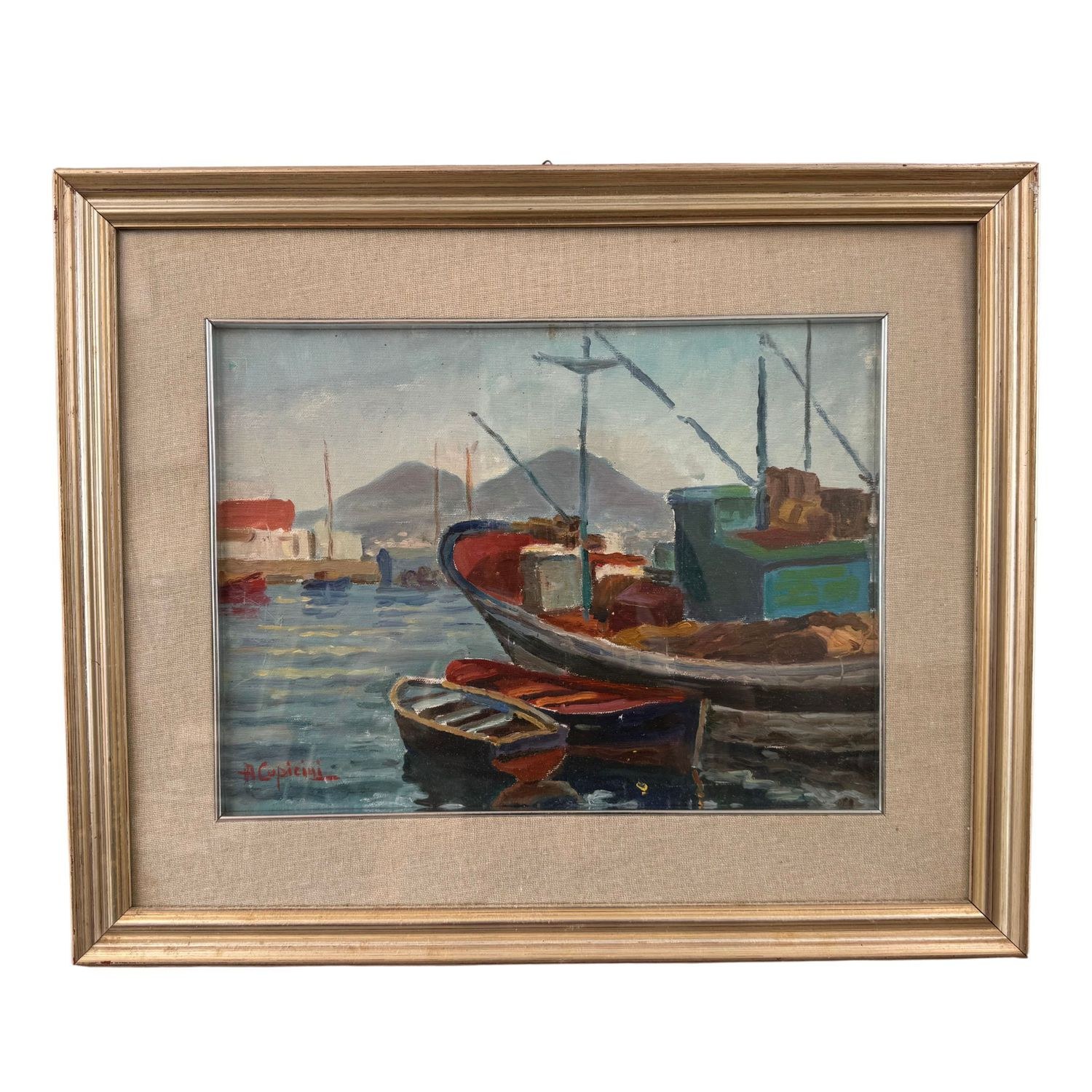 Oil painting on canvas, from the 20th century Italian school, depicting Boats in Mergellina.