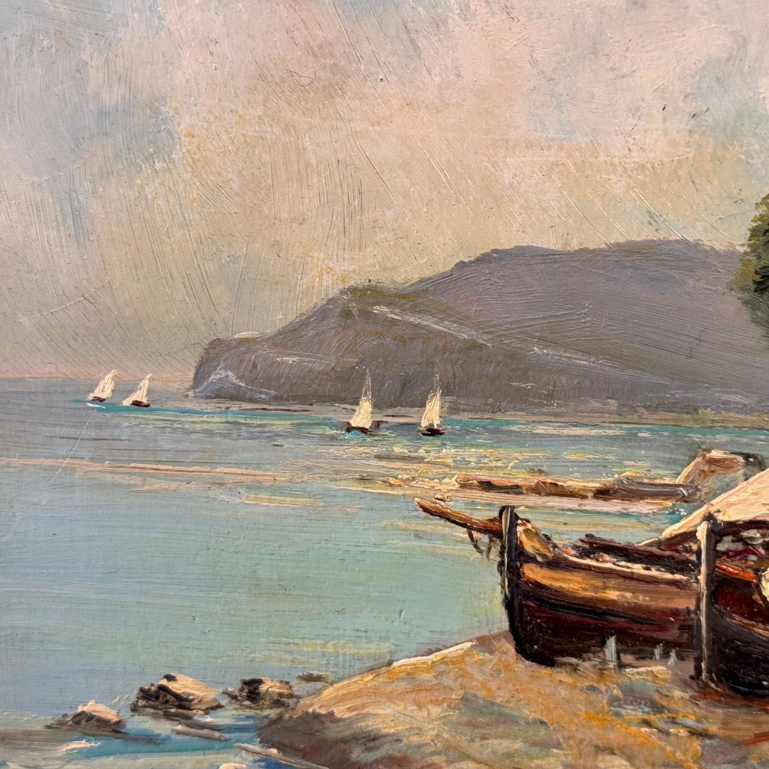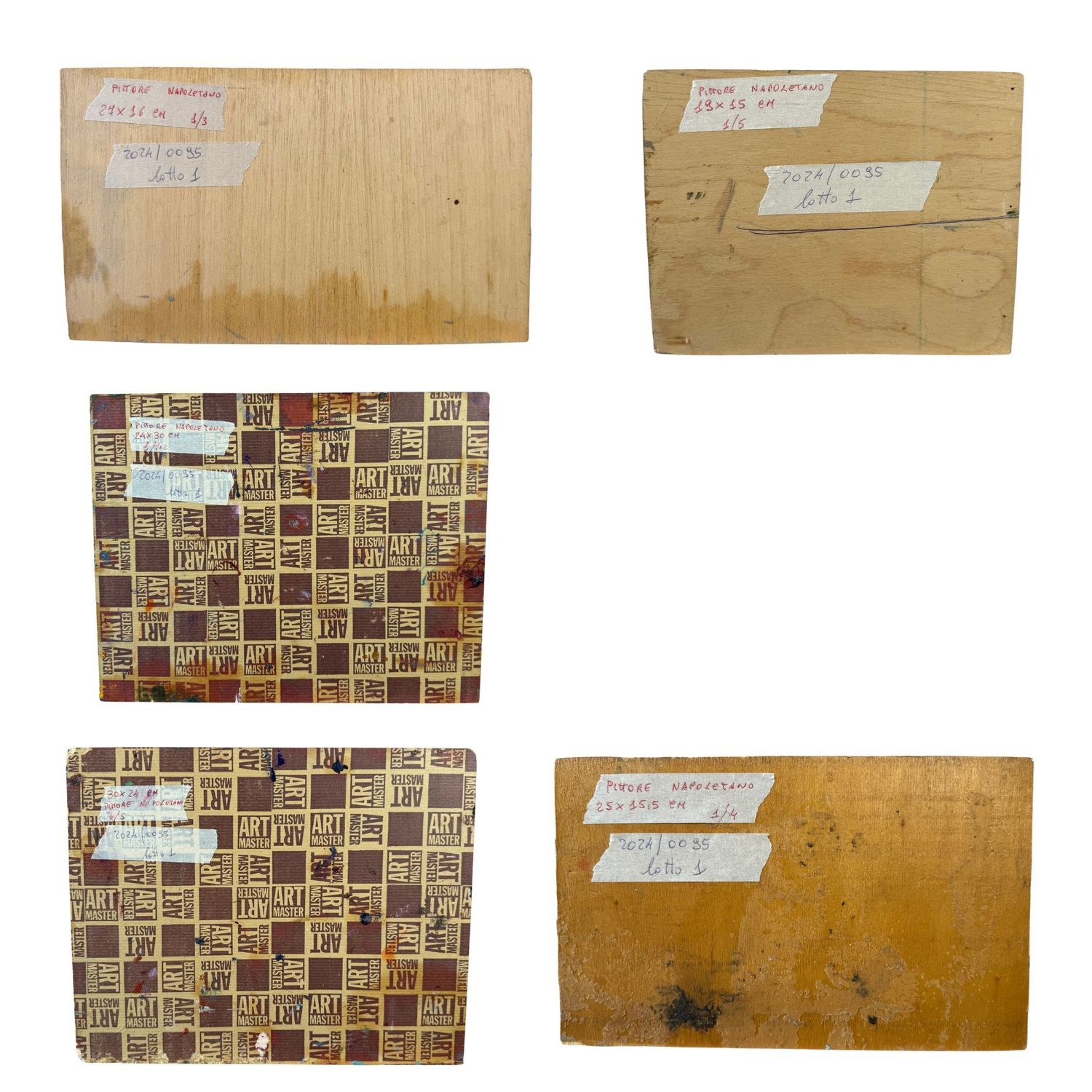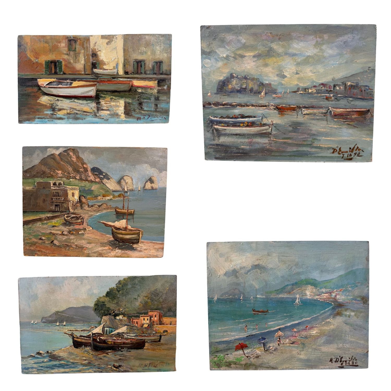 Lot of 5 oil paintings on board, from the 20th century Italian school, depicting seascapes.