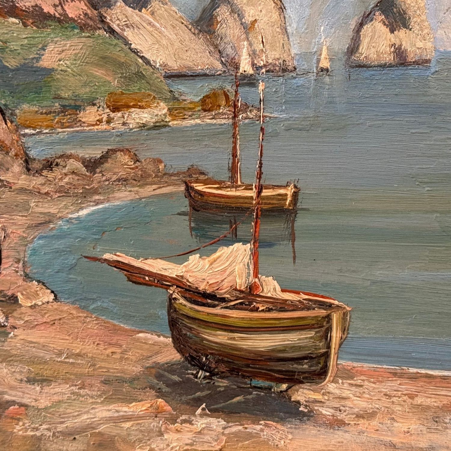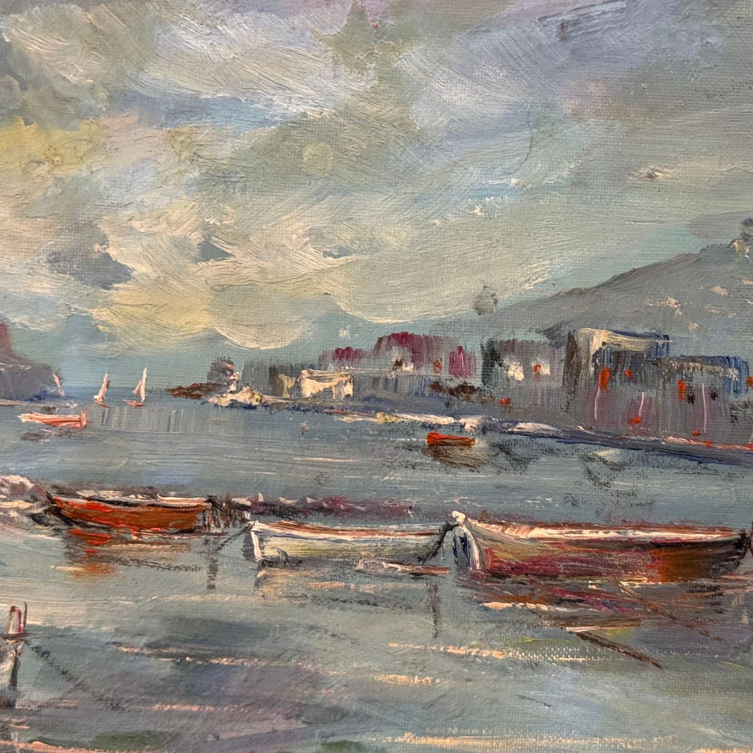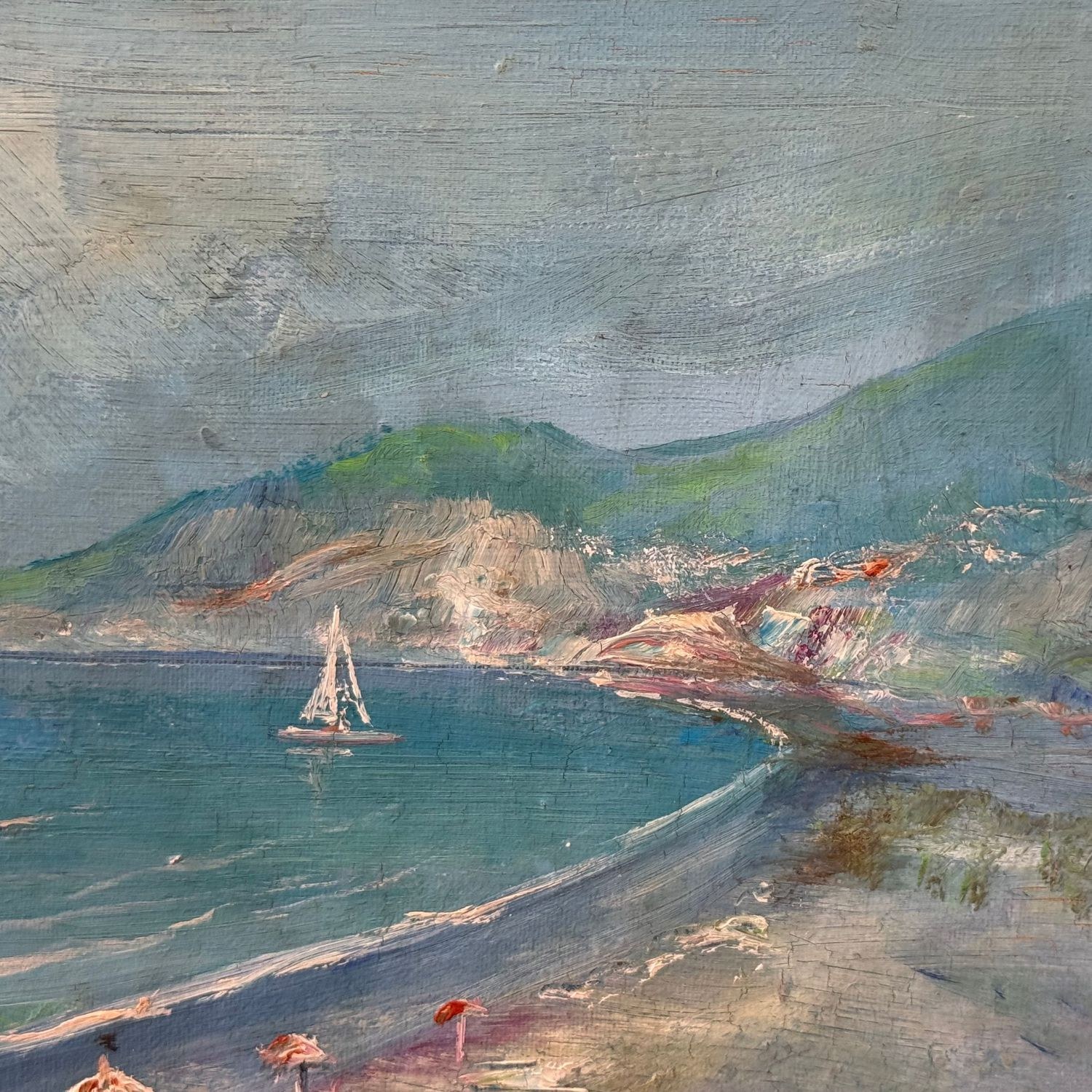 Lot of 5 oil paintings on board, from the 20th century Italian school, depicting seascapes.