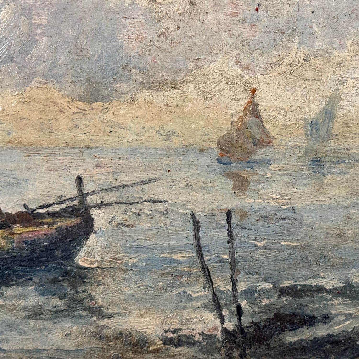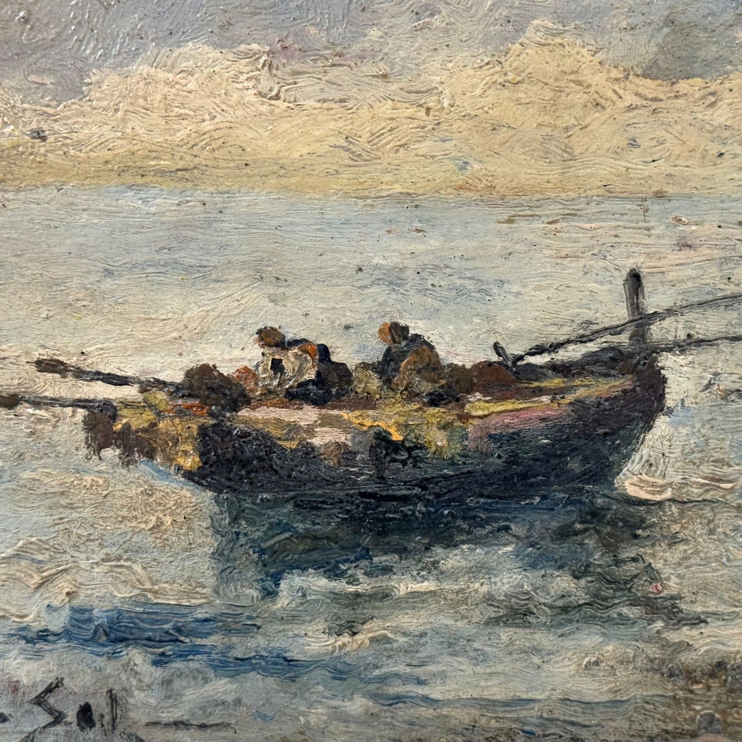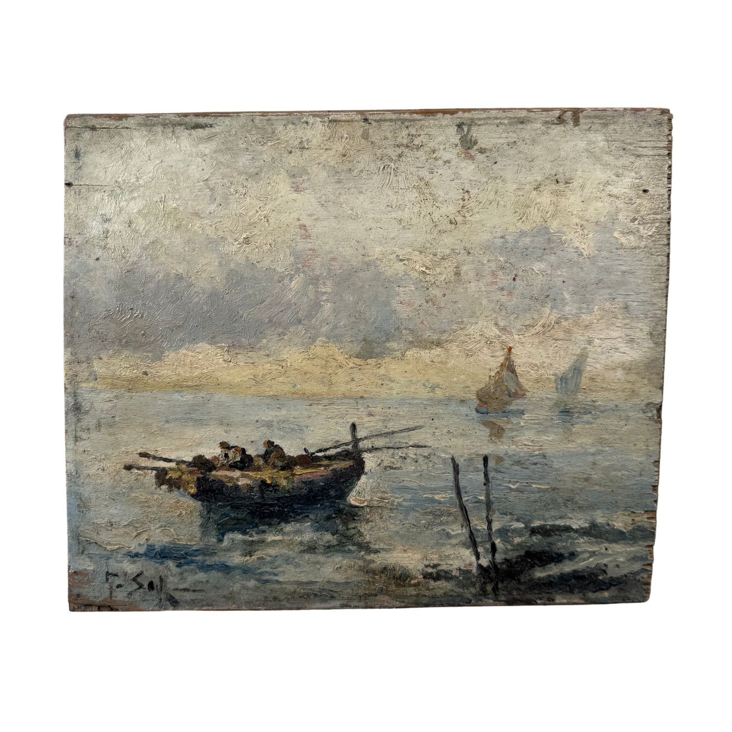 Oil painting on board, 20th century, Italian school, depicting a seascape.