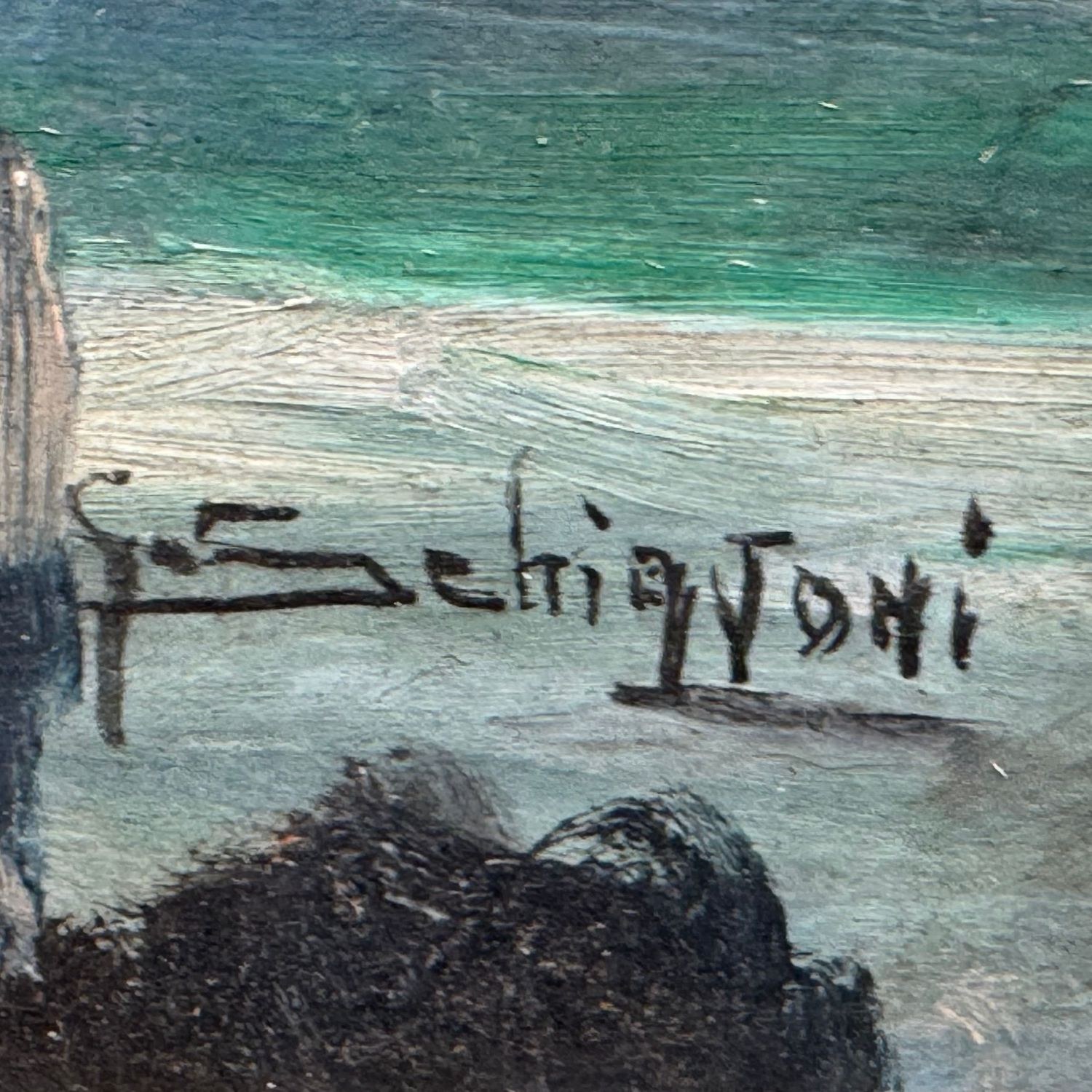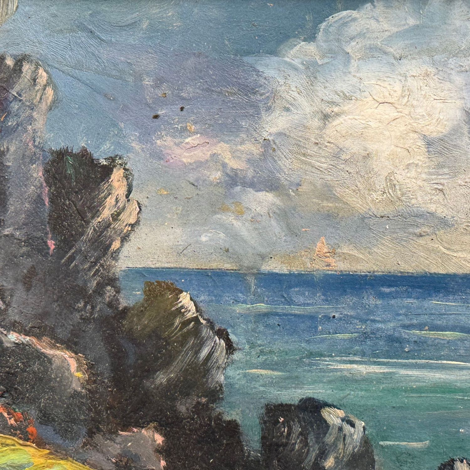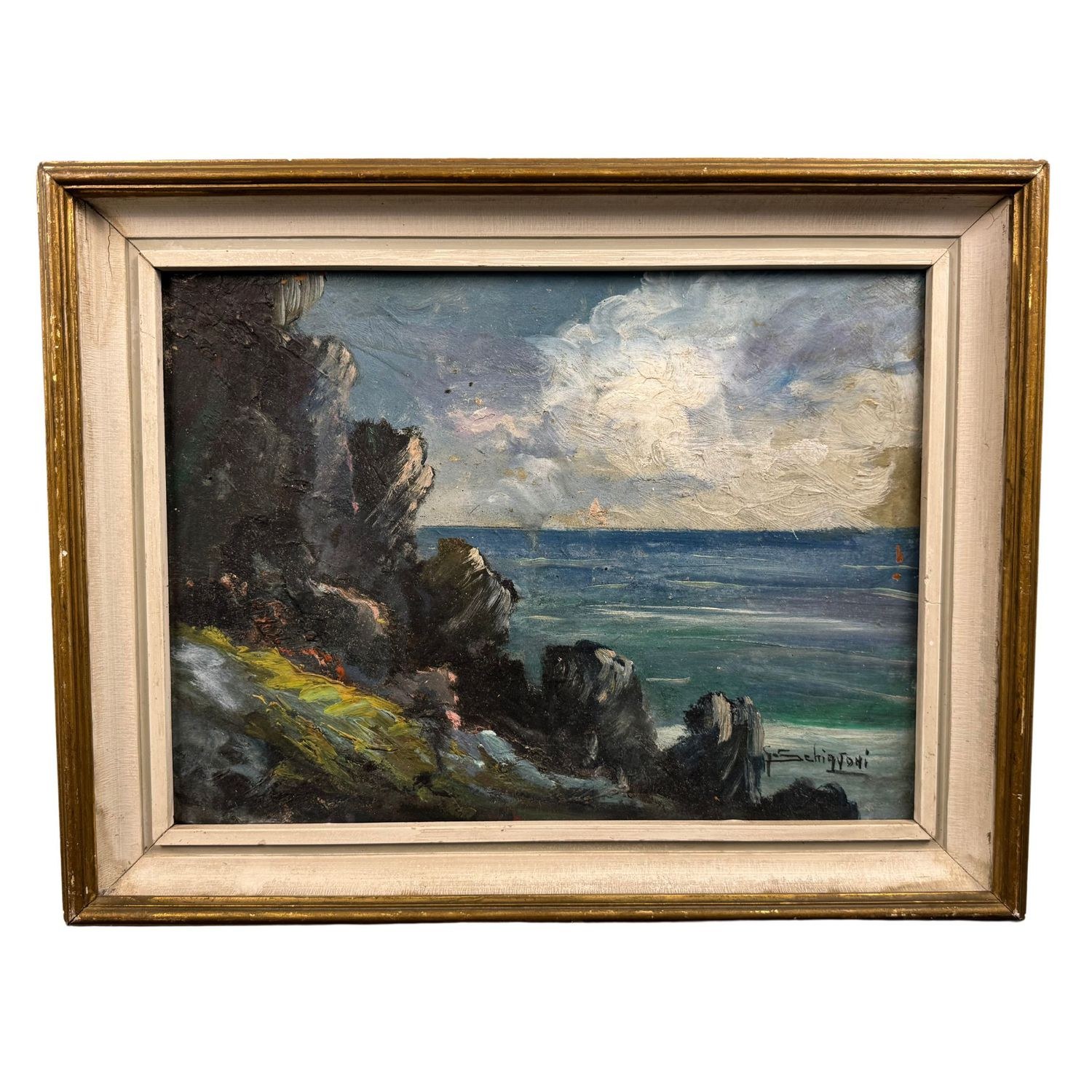Oil painting on cardboard, 20th century period, Italian school, depicting a seascape.