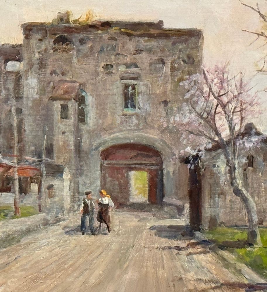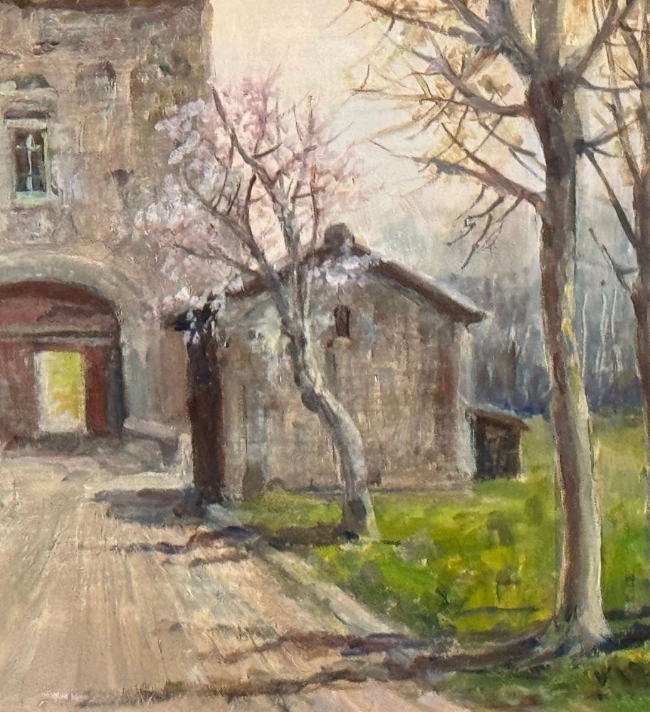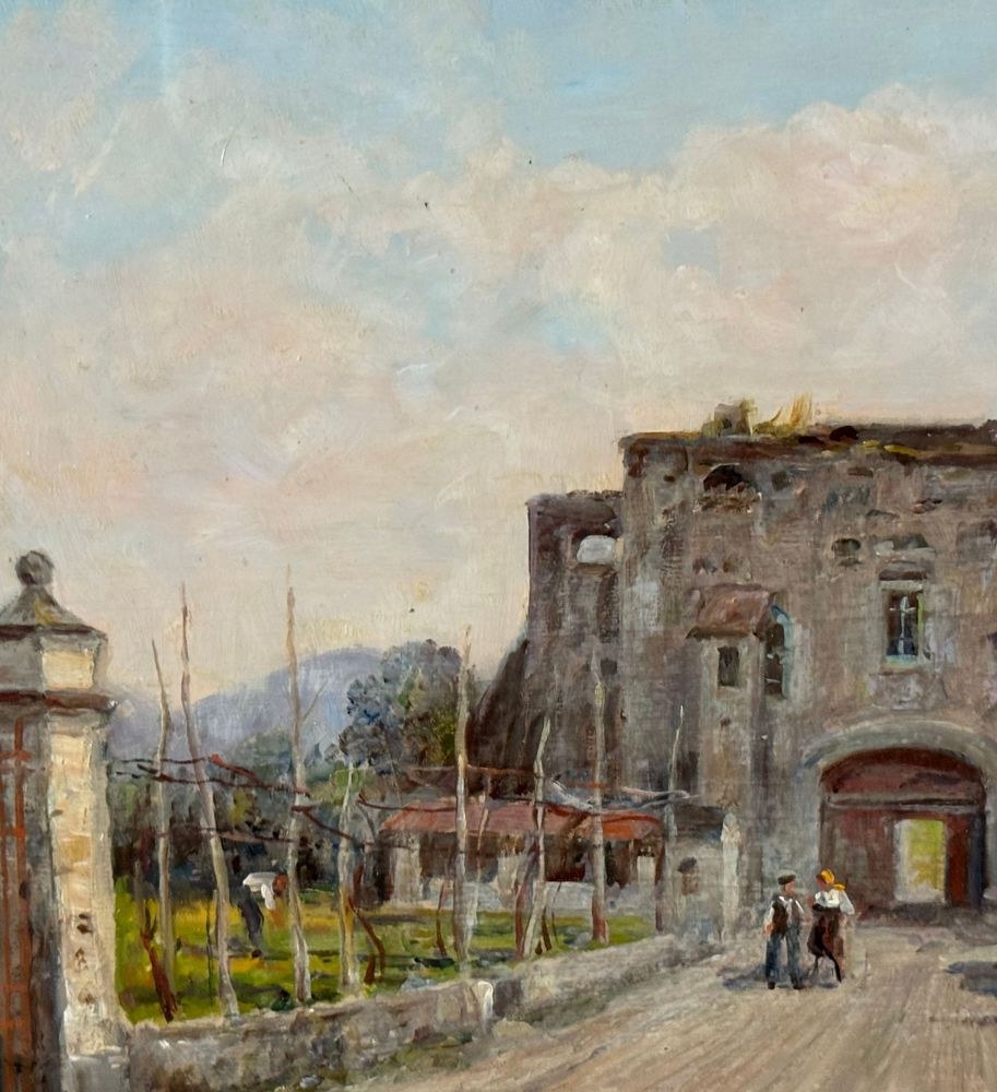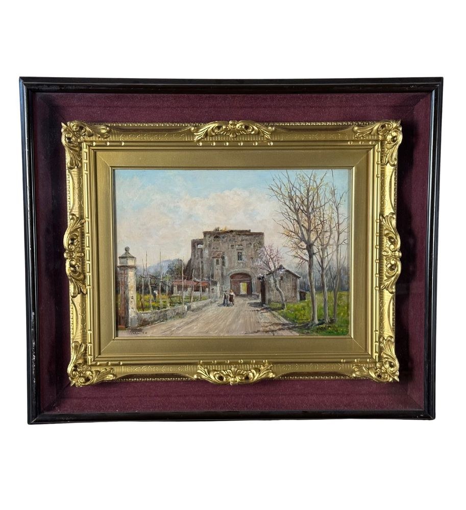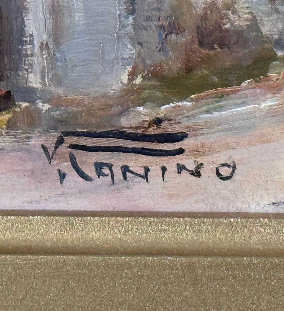 Oil painting on panel, 20th century Italian school, depicting a Country Cottage. Dimensions including frame: 60x50 cm. Dimensions inside the frame: 35x25 cm. Signed at the bottom left Vincenzo Canino. The work is in good condition.