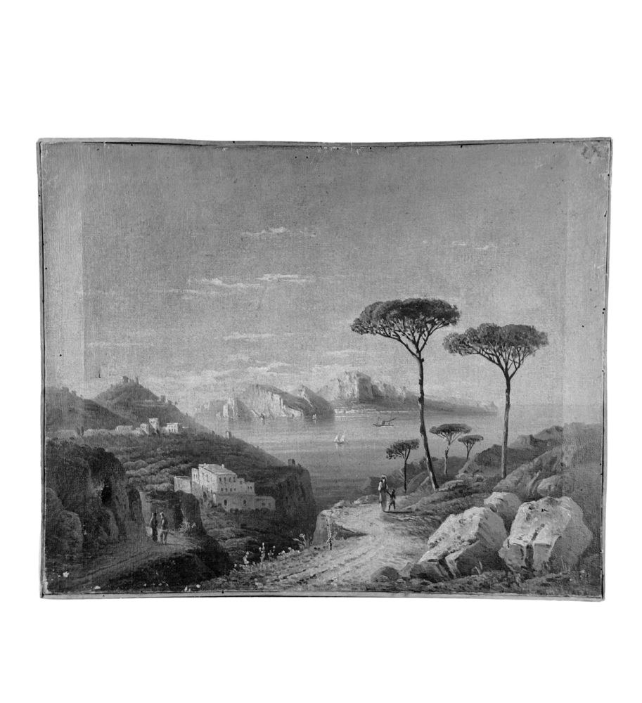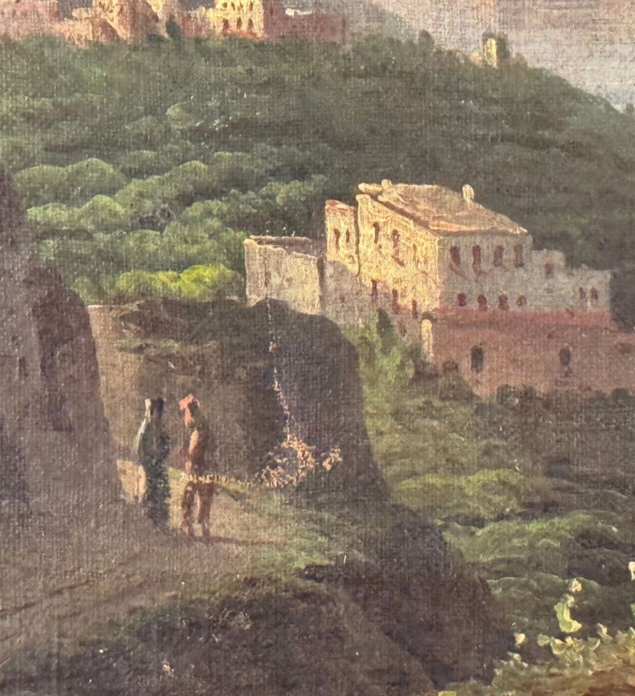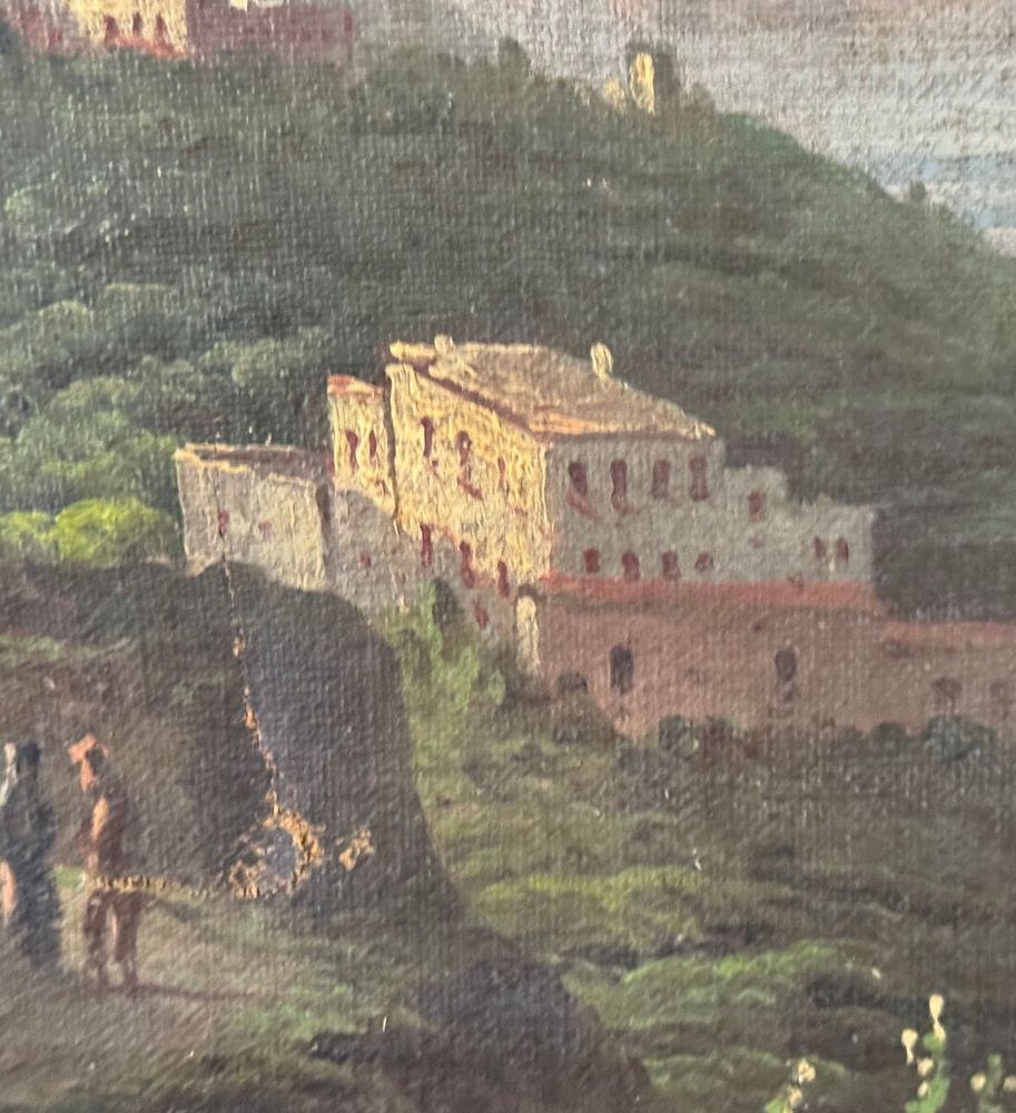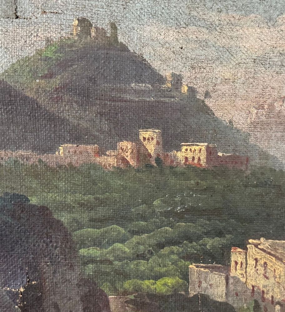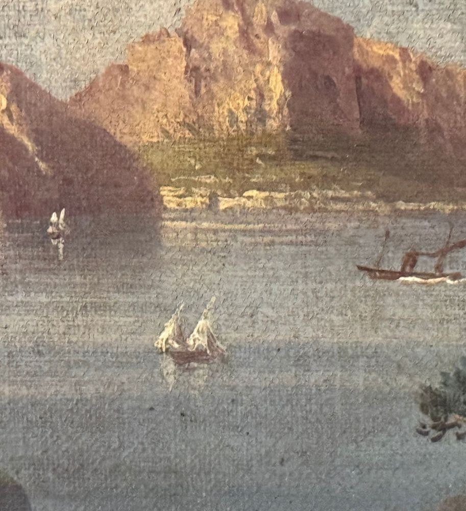 Oil painting on canvas, 19th century, Neapolitan school, depicting a view of Procida and Ischia. Dimensions: 63x51 cm. By an anonymous artist. The work is in fair condition.