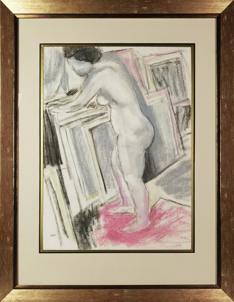 Oferowana praca ukazuje nagą modelkę, która podczas przerwy w pozowaniu zaczyna przeglądać obrazy Mistrza. Metaforycznie odczytując tę scenę można powiedzieć, że Weiss odkrywa przed nią swoje wnętrze, wprowadza w świat swojego imaginarium. (Renata Weiss)
