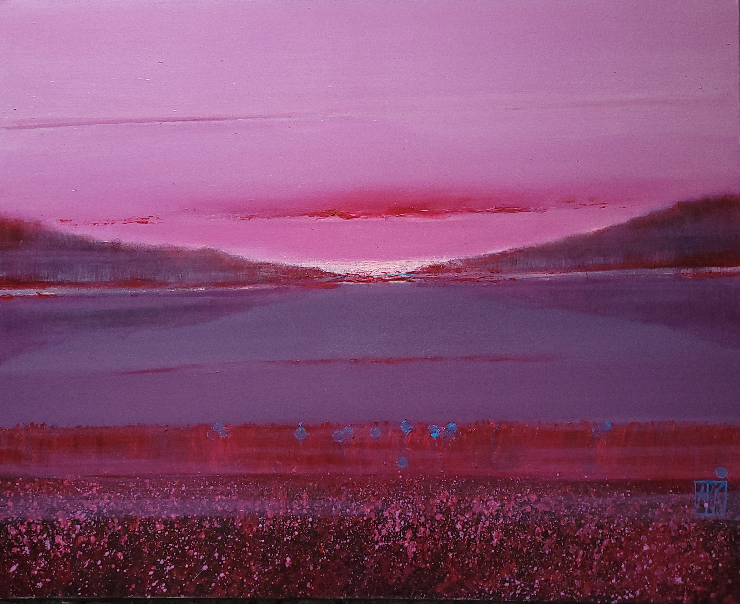 Anna Kuchniak, Wrzosowy wschód, 65x80 cm, akryl, płótno, 2020 rok.