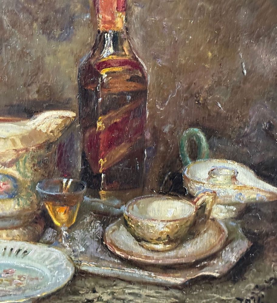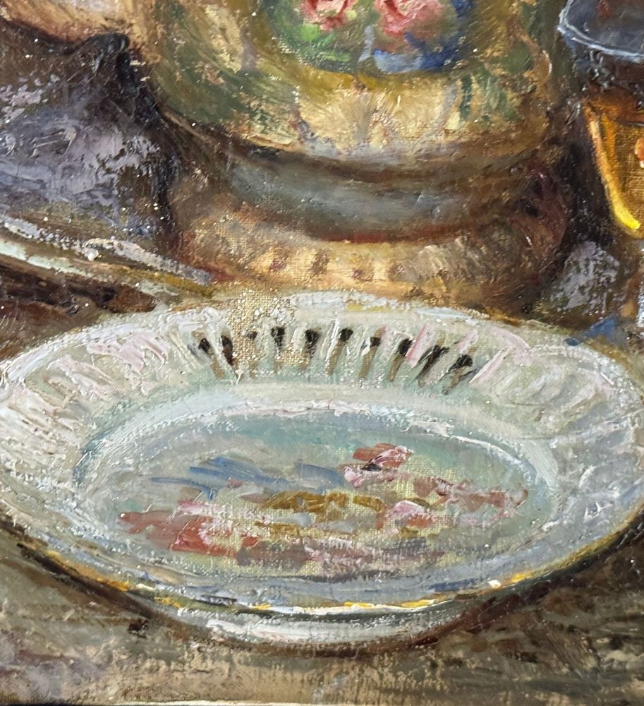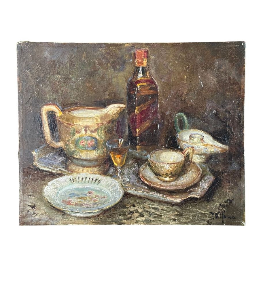 Oil painting on canvas, 20th-century Italian school depicting Antique Objects. Dimensions: 51x41 cm. Signed in the lower right. The artwork is in good condition with slight signs of wear, as shown in the attached photos.