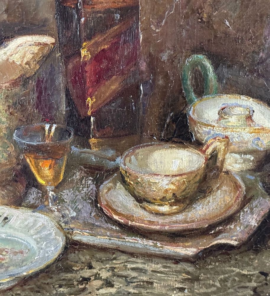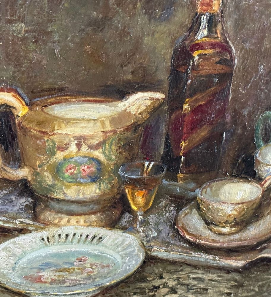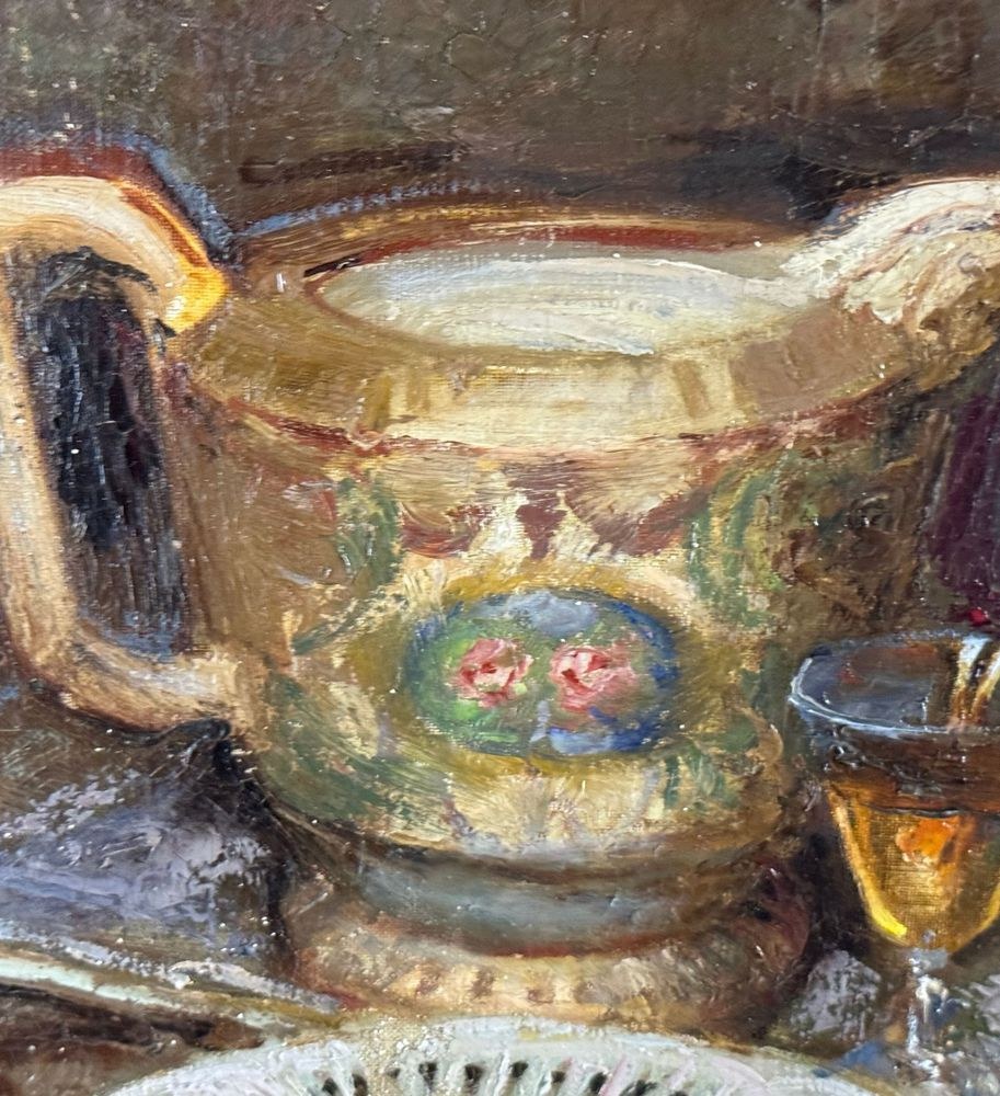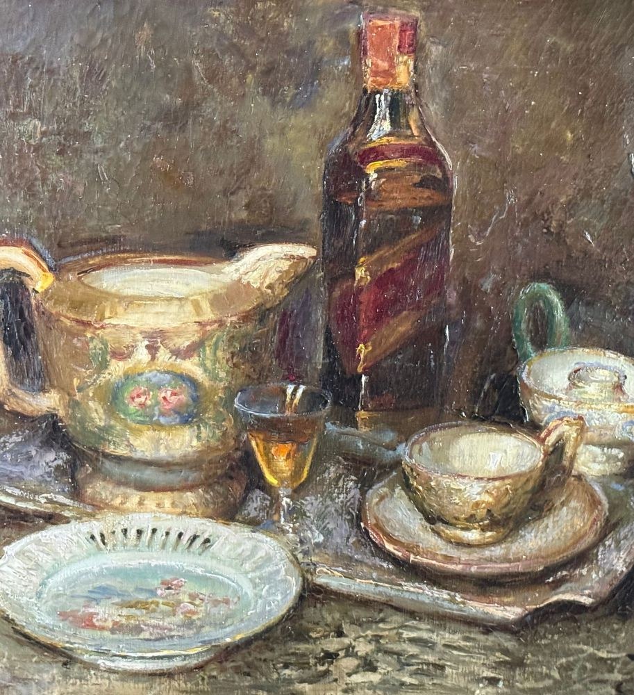Oil painting on canvas, 20th-century Italian school depicting Antique Objects. Dimensions: 51x41 cm. Signed in the lower right. The artwork is in good condition with slight signs of wear, as shown in the attached photos.