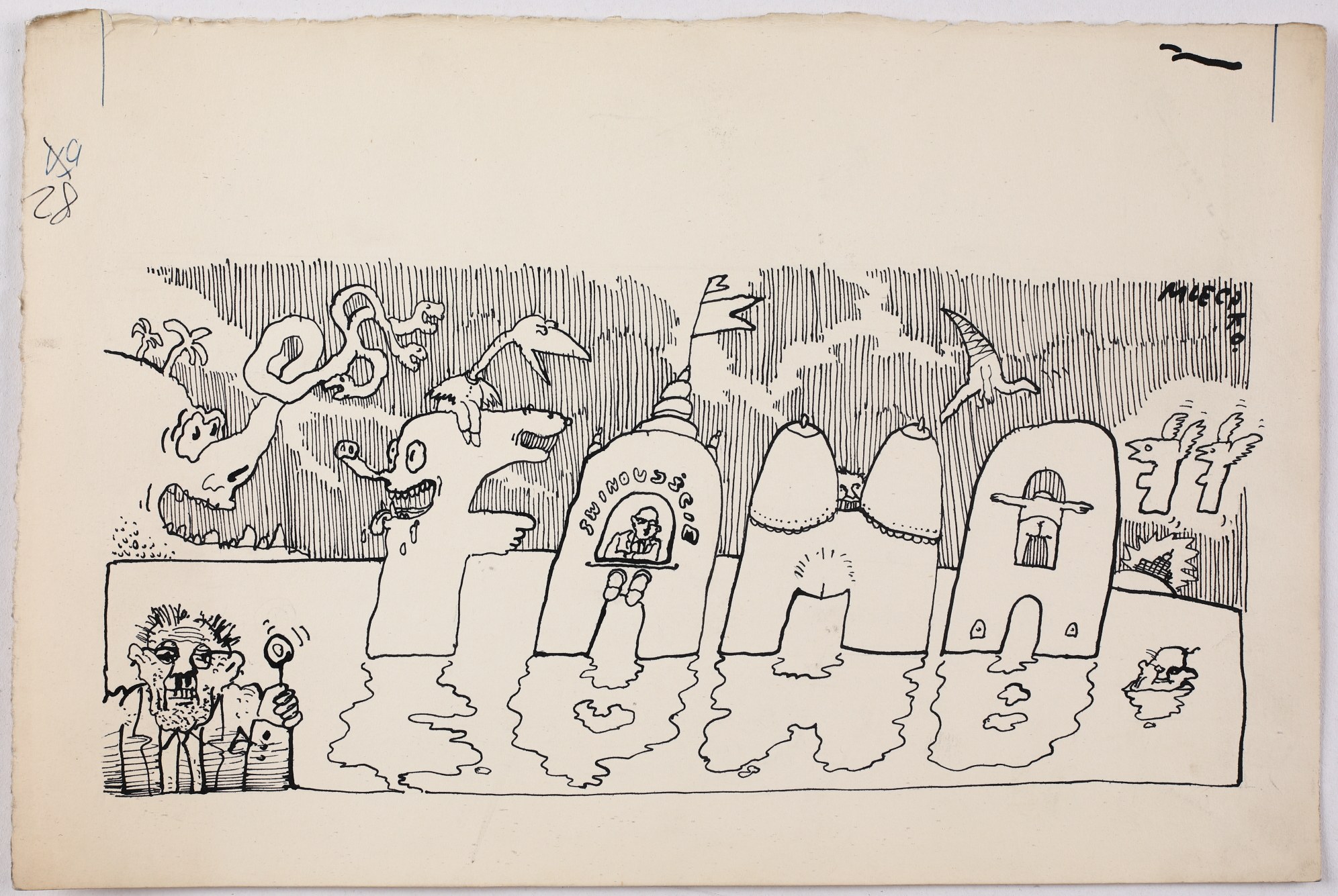 Tusz, papier; wym. komp.: 14,5 x 33 cm; sygn. p. g.: MLECZKO