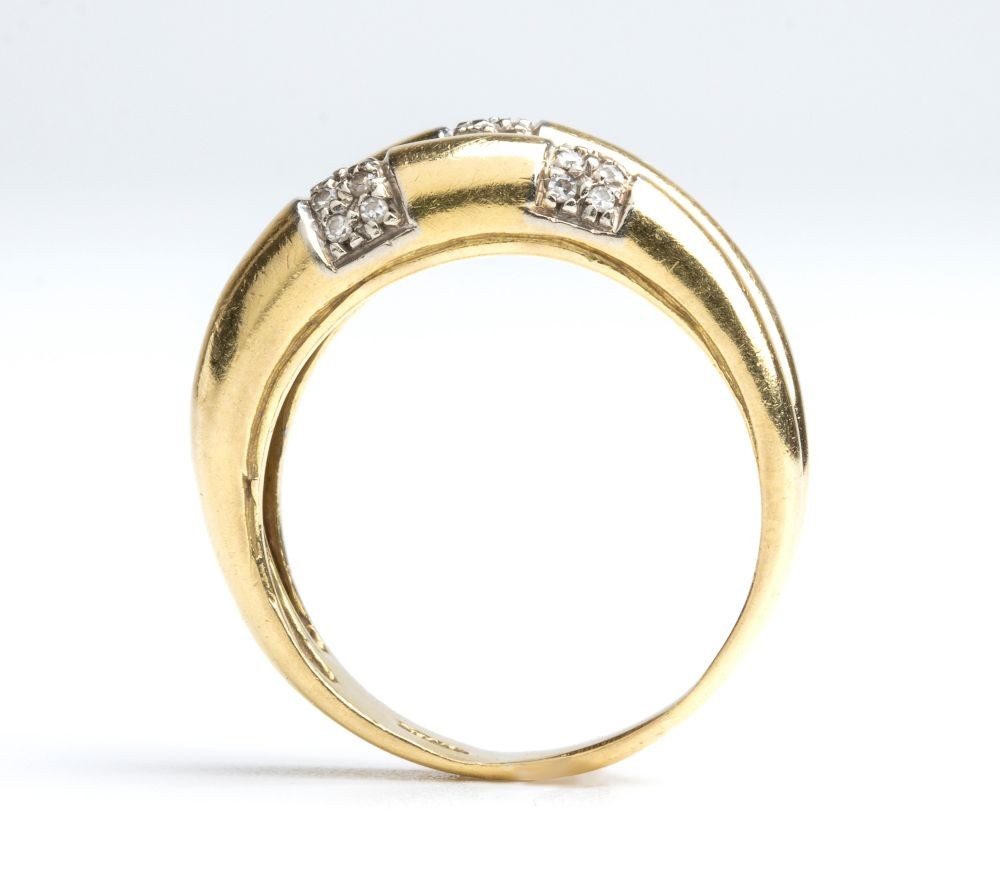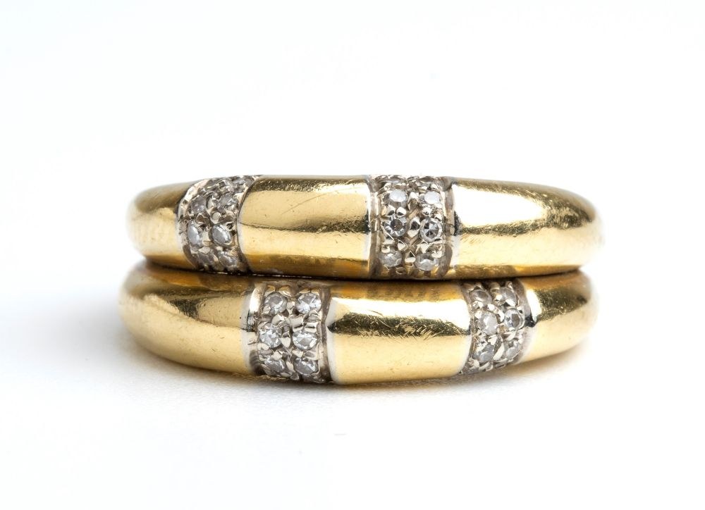 in 18k yellow gold, double band motif with four small pavé diamonds. Hallmarked '750 - 185 AL'.