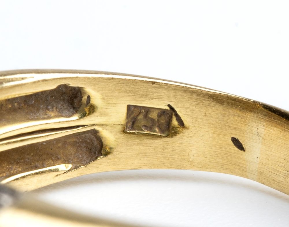 Hallmarked '750 - 185 AL'. IT size 18; US size 8 1/2. Weight 5.7 g.