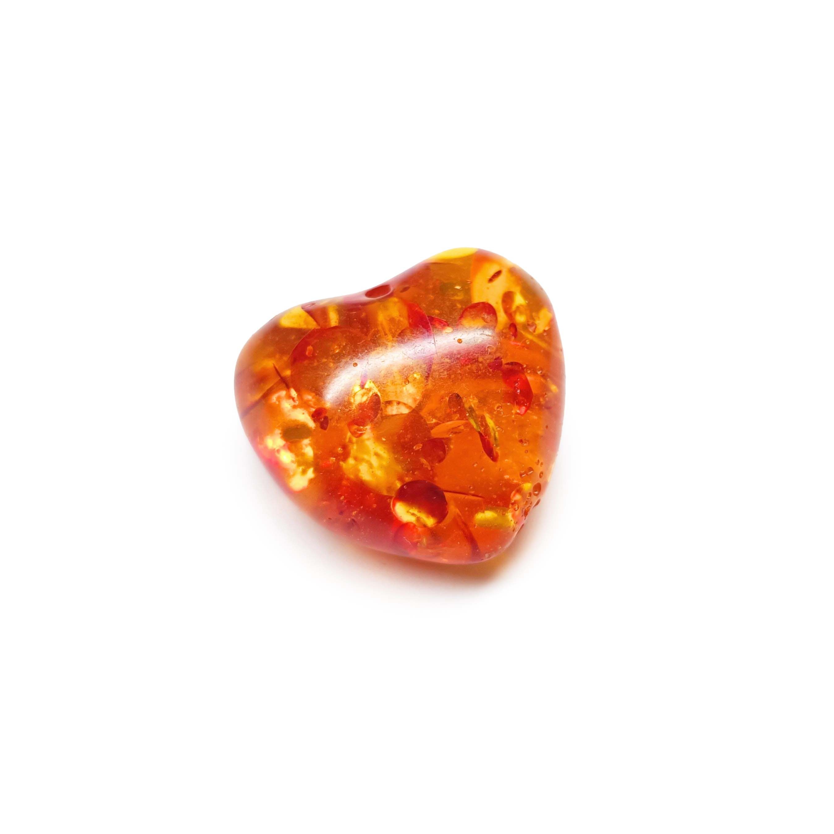 Zawieszka w kształcie serca z tworzywa, w kolorze bursztynowym.