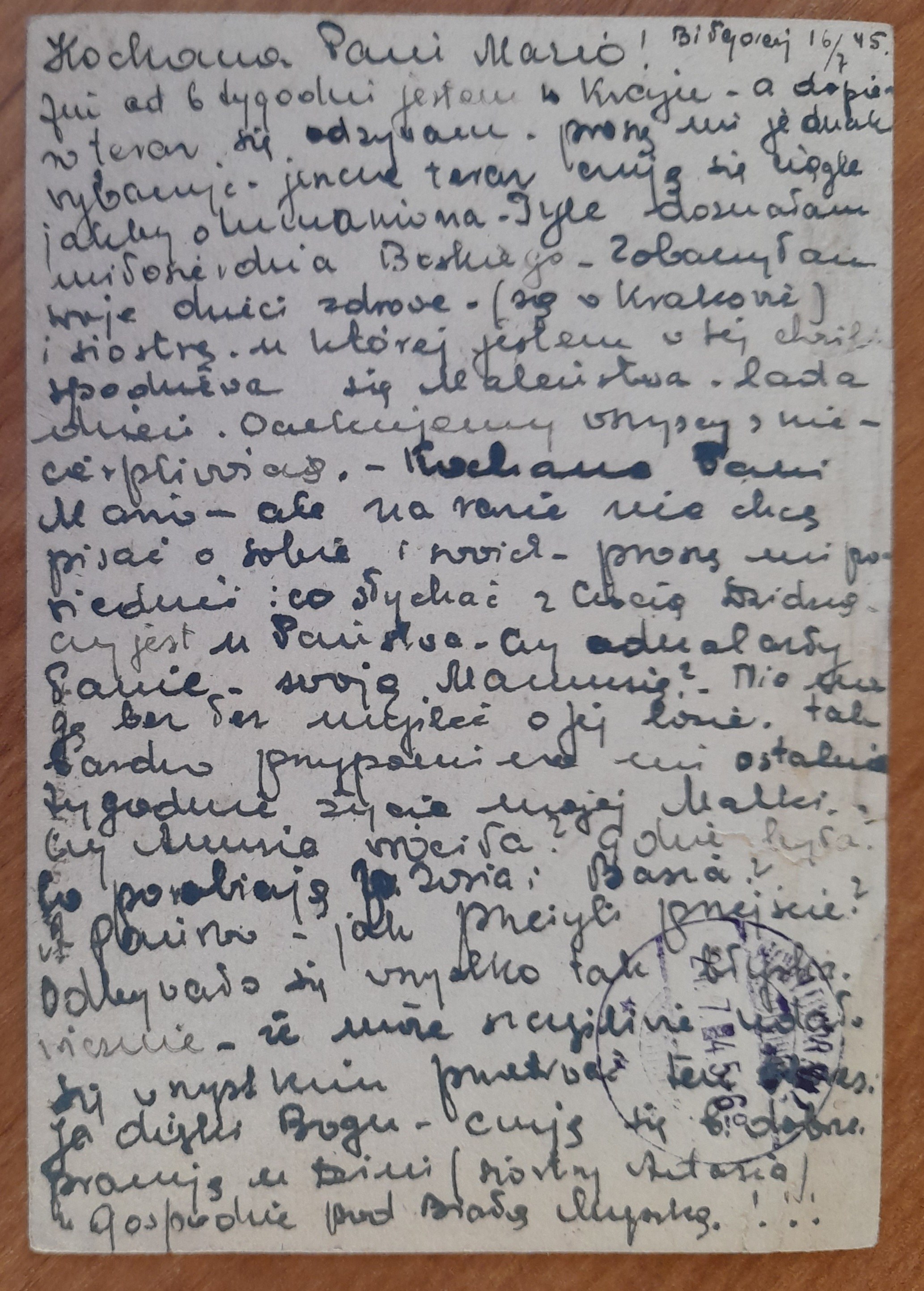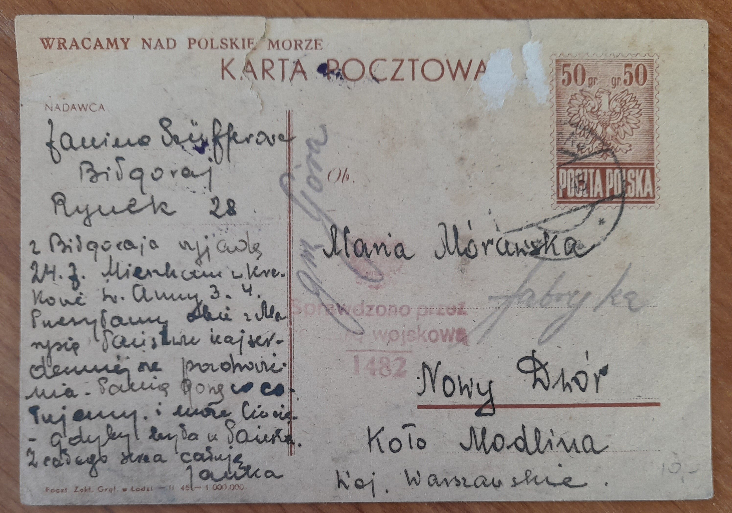 Nowy Dwór k.Modlina. Karta pocztowa obieg 1945.Sprawdzona przez cenzurę wojskową.