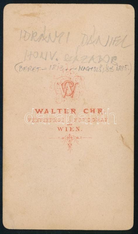 Idrányi Dániel (1813-1885) honvéd százados az 1848-49-es forradalom és szabadságharc idején Máramarosban. Vizitkártya fotó 6,5x11 cm