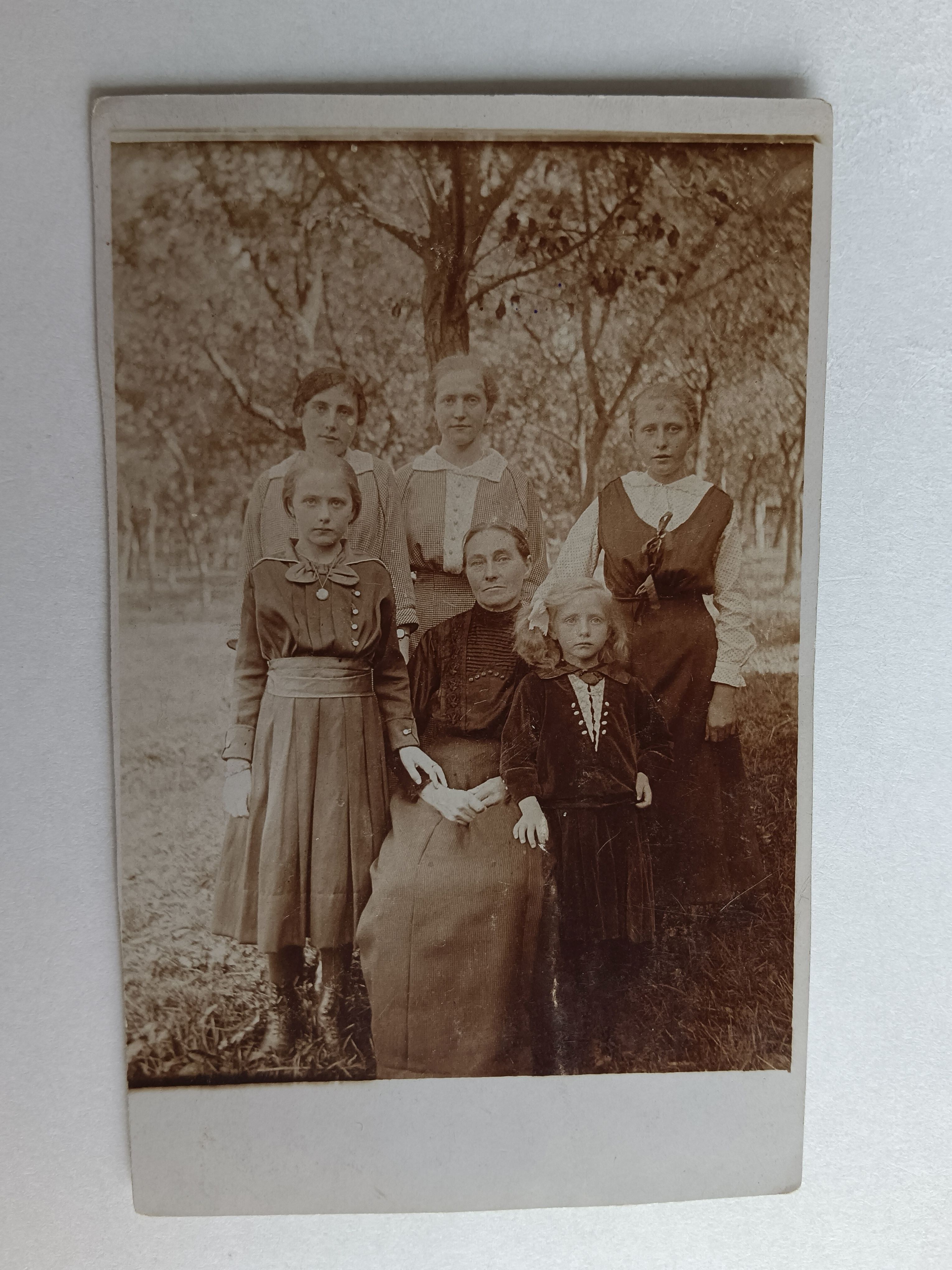 ZDJĘCIE GRUPA OSÓB W OGRODZIE PRZEDWOJENNE