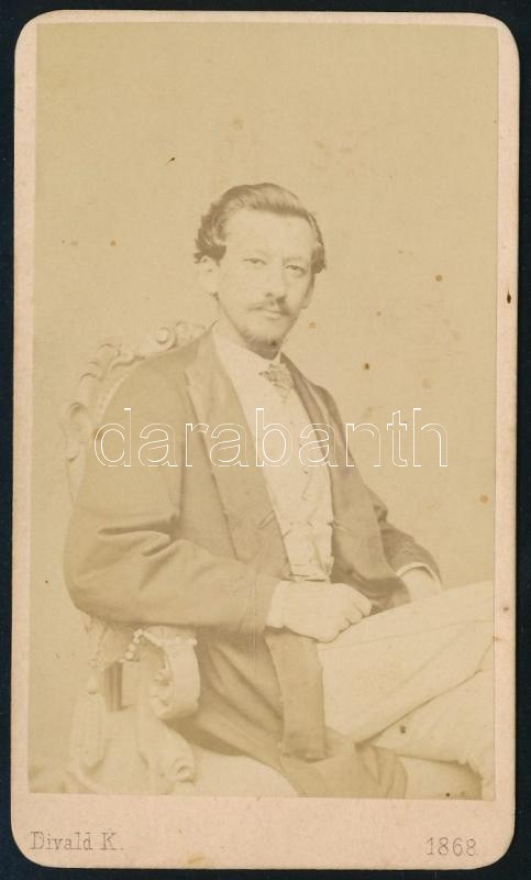 1868 Myskovszky Viktor (1838-1909) építész, művészettörténész, keményhátú fotó Divald Károly eperjesi műterméből, 10...